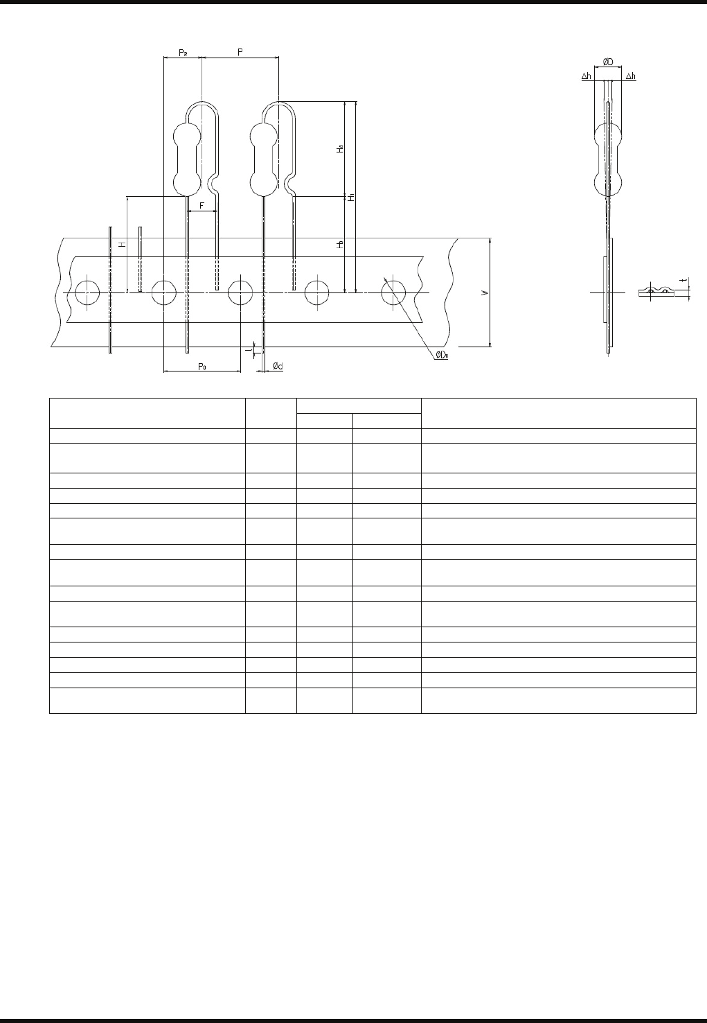 RL132 参考手册 2.5 适用元件 DA9RCC-12-160-B0 2.5-1 1 8. 电阻器 (B) 尺寸 (mm) 内容 记号 数值 容许范围 备注 元件直径 Ø D 4.5 最大 引脚线直径 Ø d 0.6 ±0.05 软铜线是 Ø 0.6 mm 硬铜线和 CP 线是 Ø 0.5±0.05 mm 元件间距 P 12.7 ±1.0 孔间距 P 0 12.7 ±0.3 累积间距误差 = 1.0mm /20 间距 从孔中心到元件…