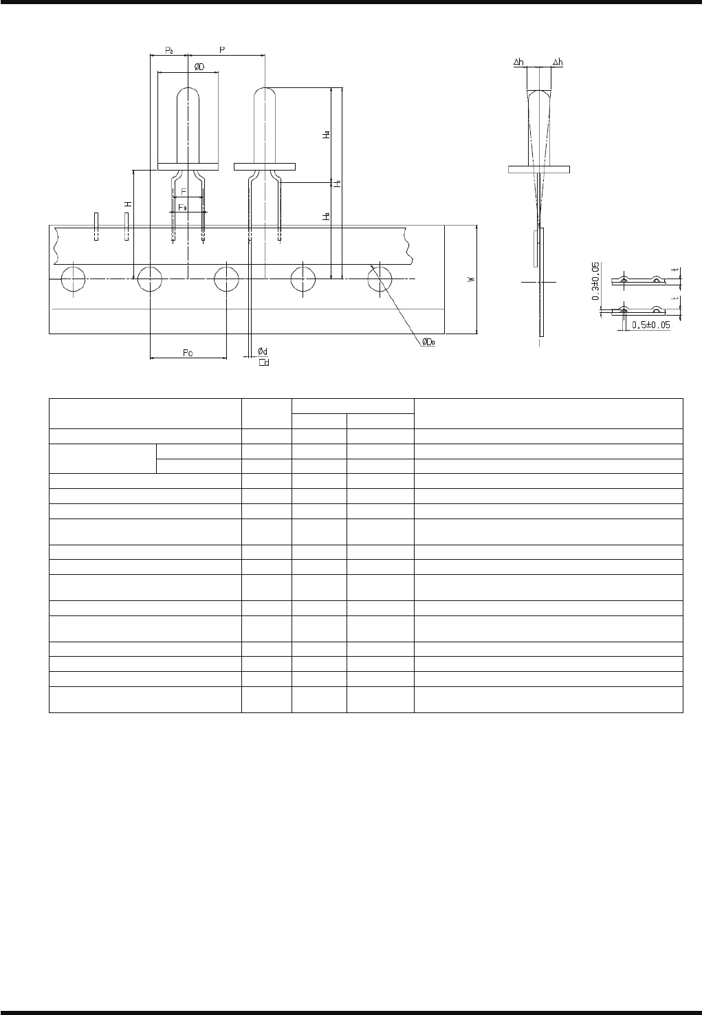 RL132 参考手册 2.5 适用元件 DA9RCC-12-160-B0 2.5-16 13. 保险丝夹子 尺寸 (mm) 内容 记号 数值 容许范围 备注 元件宽度 A 1 10 最大 元件厚度 T 6.5 最大 圆形引脚 Ø d 0.5 ±0.05 引脚线直径 方形引脚 □ d *0.5 ±0.05 *(0.5±0.05) x (0.3±0.05) 元件间距 P 12.7 ±1.0 孔间距 P 0 12.7 ±0.3 累积间距误差 …