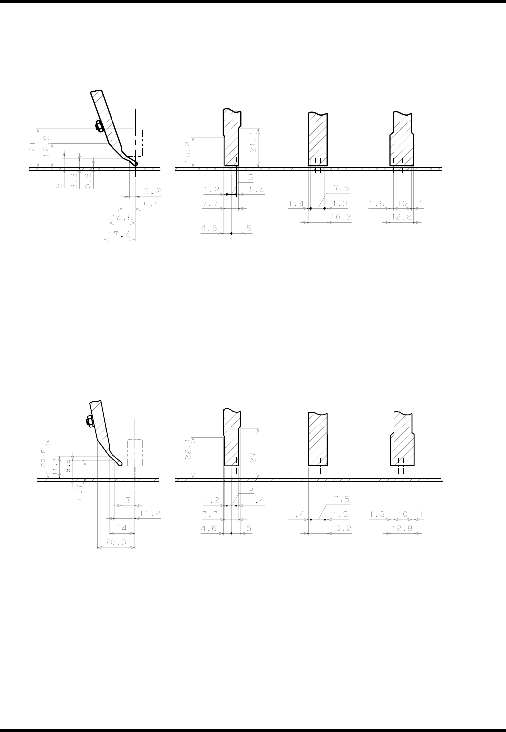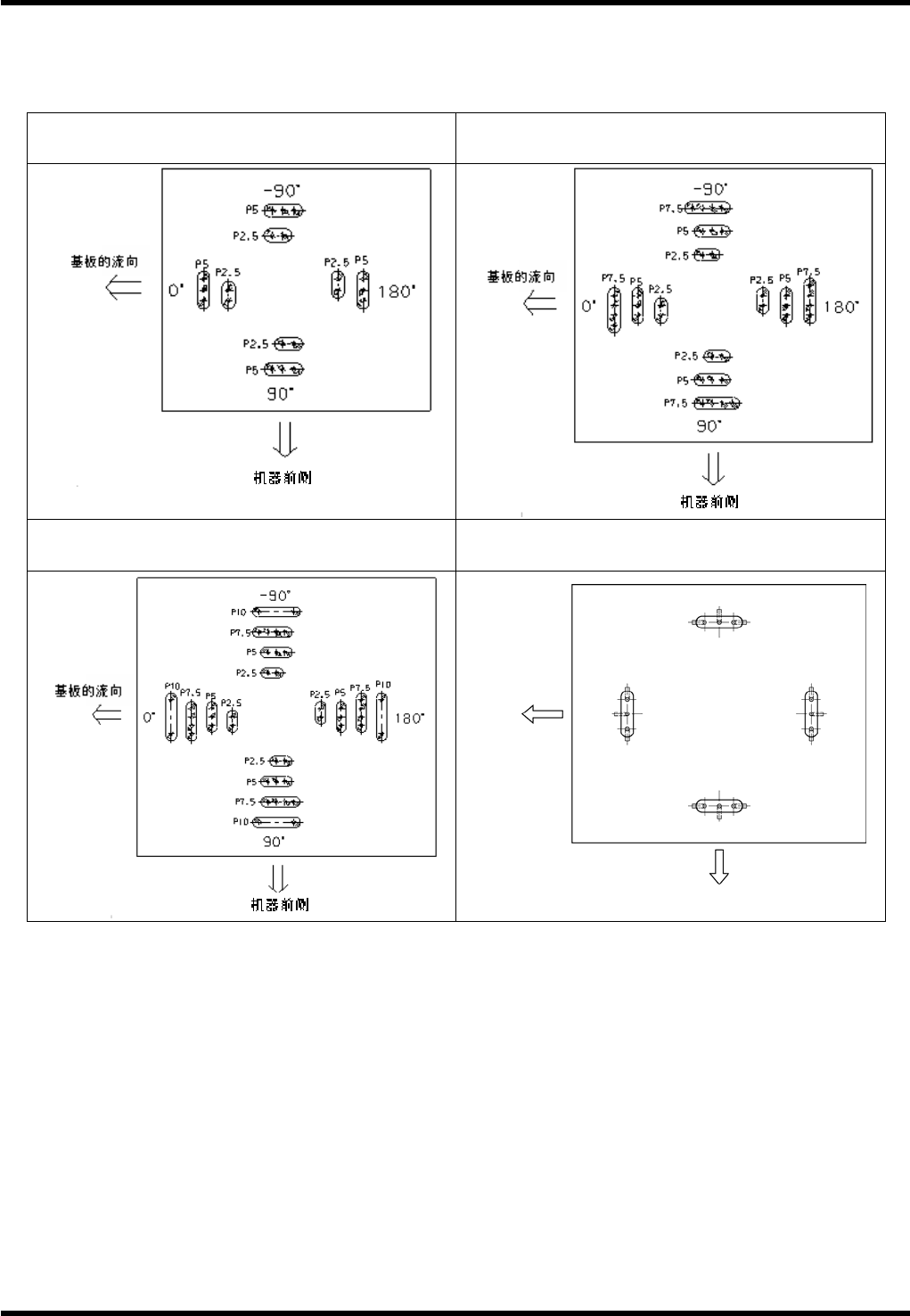 RL132 参考手册 2.7 插入条件 DA9RCC-12-180-A0 2.7-3 2.7.3 基板下的邻接条件 铁砧扭曲的弯曲方向 从基板上方看到的铁砧扭曲的弯曲方 向 N 扭曲 5 mm 间距规格 N 扭曲 7.5 mm 间距规格 N 扭曲 10 mm 间距规格 T 扭曲 基板的流向 机器前侧 -90 ° 90 ° 180 ° 0 °