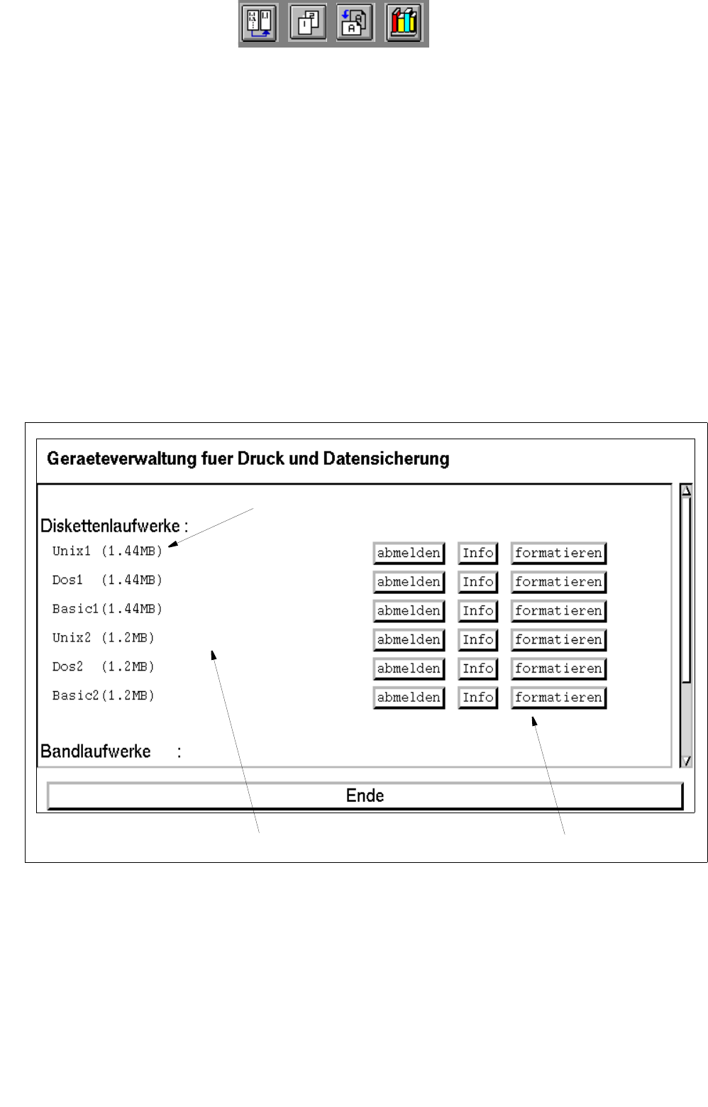 Bandlaufwerke. Außerdem können Datenträger für eine Datensicherung vorbereitet (formatiert) werden.