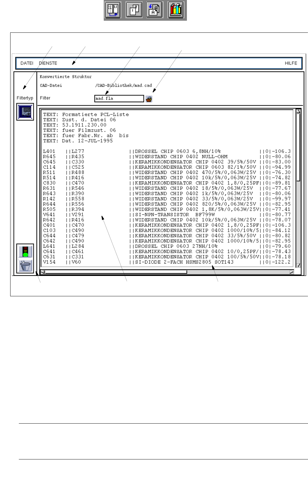Die Filter, die zur Ermittlung der erforderlichen Bestückdaten aus den zu konvertierenden Dateien