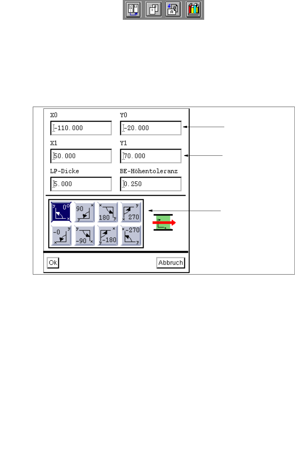Die bei der Konvertierung der Bestückdaten aus den jeweils äußerst liegenden Bestückpositionen