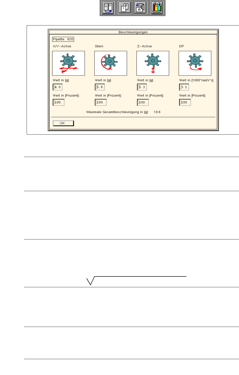 Abb. 6.1.11 Dialogfenster zur individuellen Einstellung der Beschleunigung für jede Achse