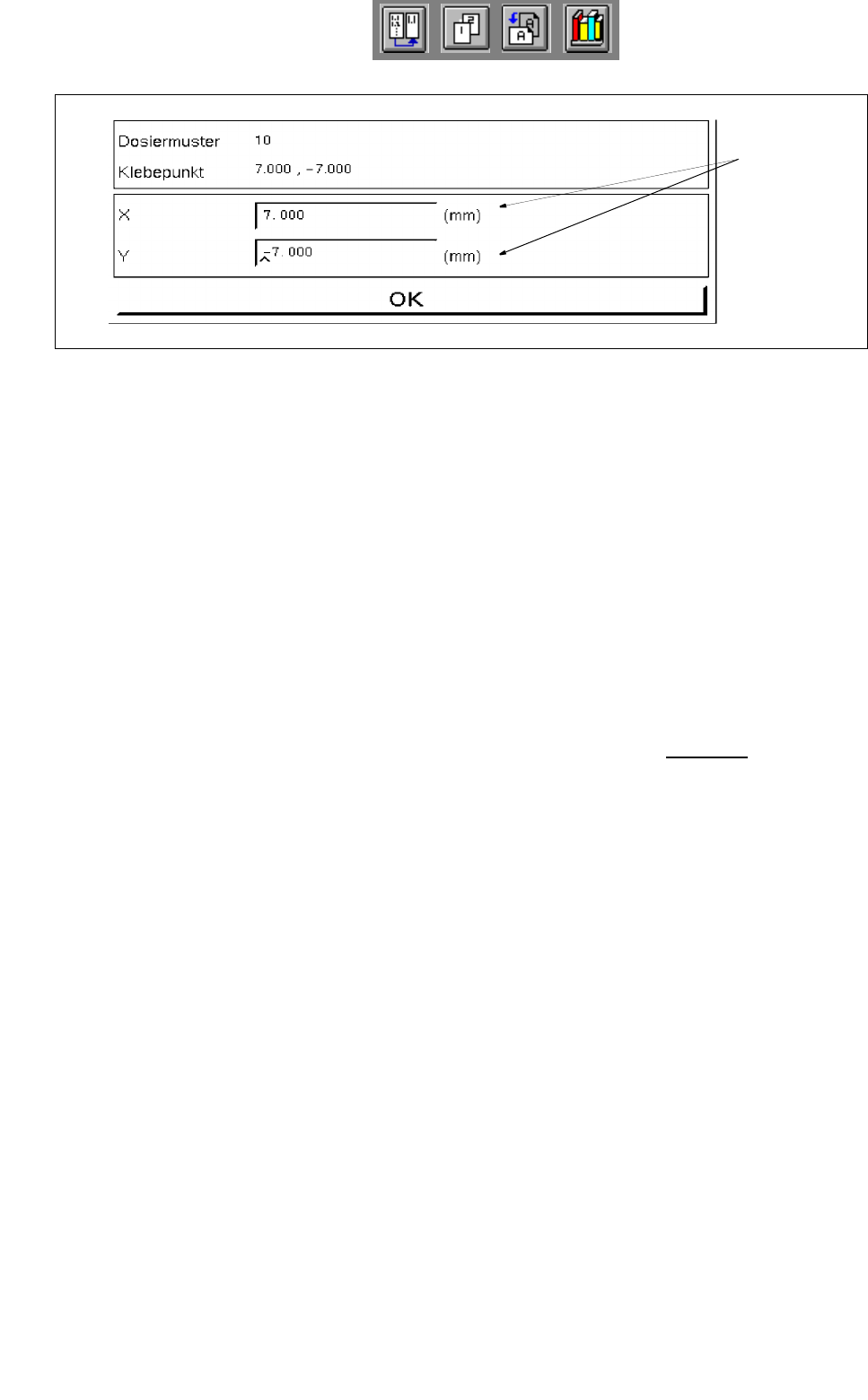 Abb. 7.1.2 Fenster "Eingabe der x/y-Koordinaten für einen Klebepunkt