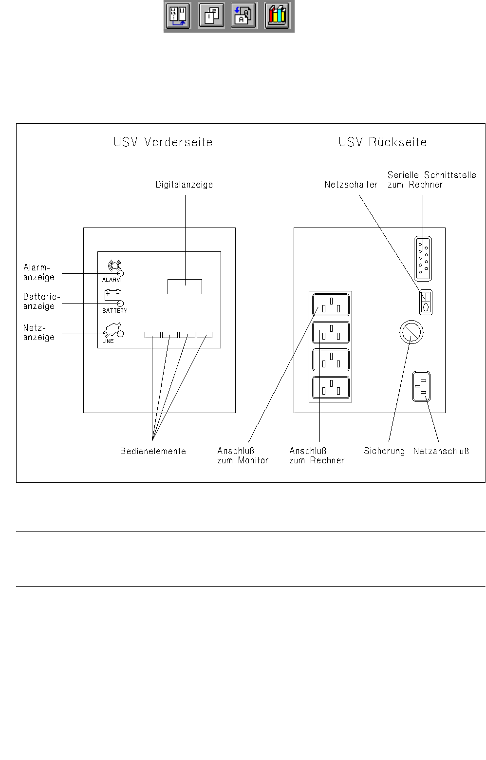 Betriebsanleitung Linienrechner UNIX 1 Einleitung und I nstallation Softwareversion 502.xx Ausgabe 10/2000 1.4 Hardware-Installation 25 I t I I 1.4.3 Unterbrechungsfreie Stromver sorgung USV Die USV dient daz u, bei zu n…