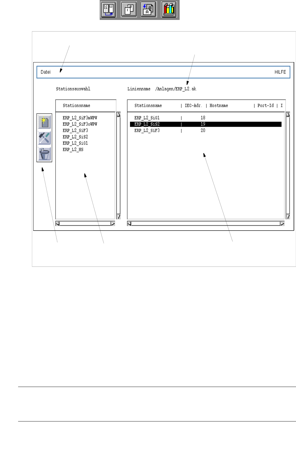 Nach Aktivieren des entsprechenden Kommandos in diesem Bereich können selektierte Stationen zur aktuellen