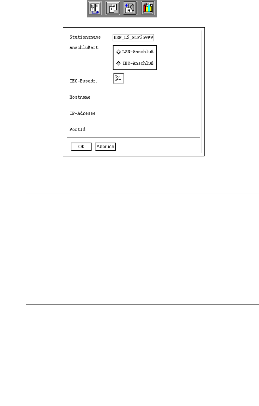 Betriebsanleitung Linienrechner UNIX 12 Produktionsmittel / Stations- und Linienkonfiguration Softwareversion 502.xx Ausgabe 10/2000 12.2 Anlagen-Editor 375 I t I I ● Button LAN-Anschlu ß ode r IEC-Anschlu ß f ü r die An…