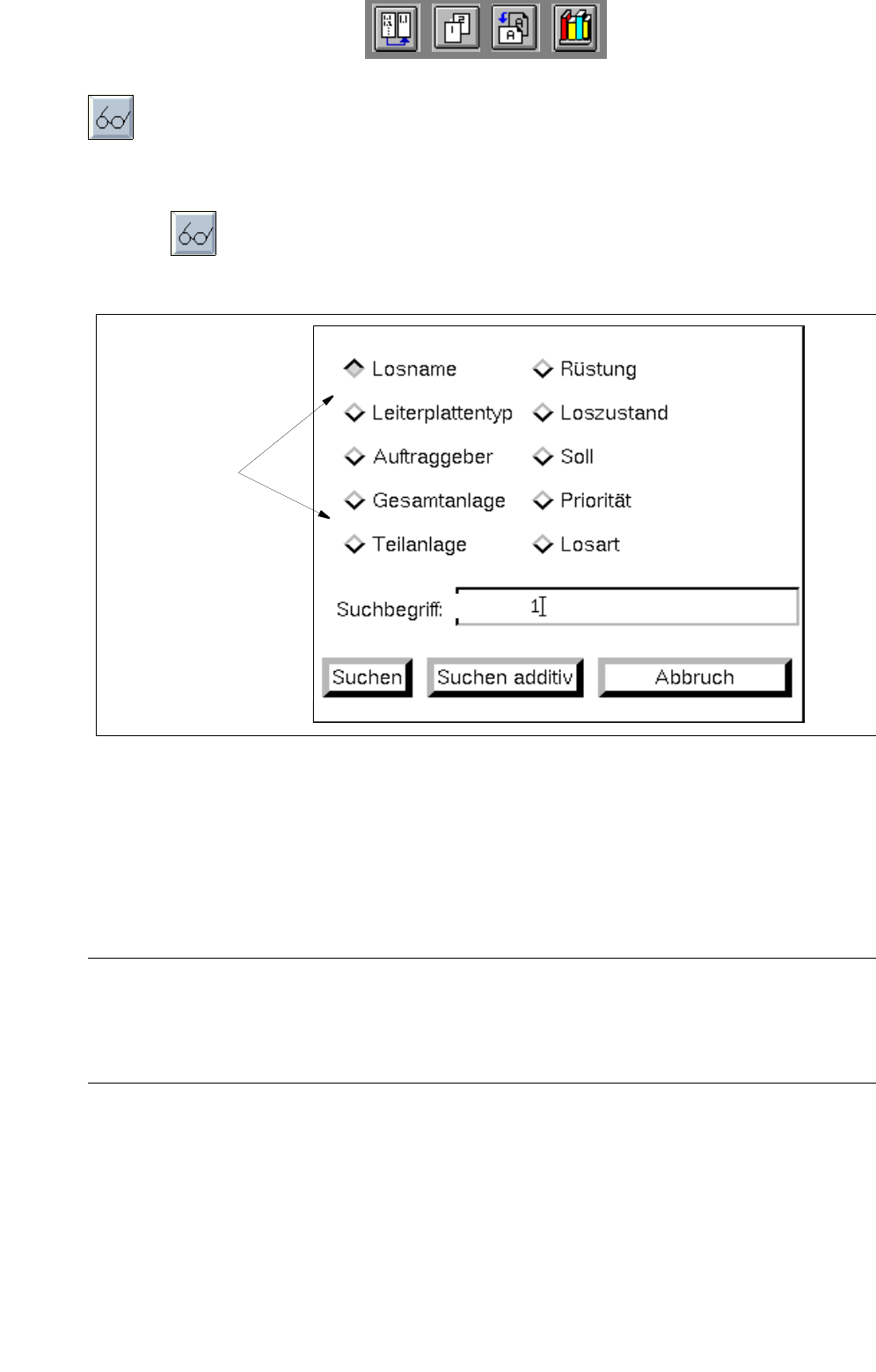 ● Button für gewünschtes Suchkriterium, z.B. Losname, aktivieren.