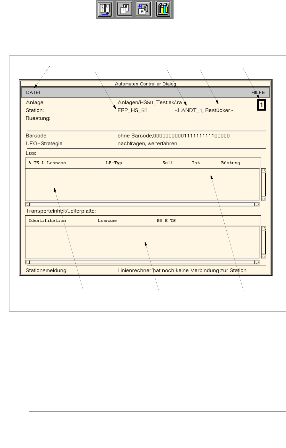 - Stationsmeldung: Zustand der Station (z.B. Linienrechner hat noch keine