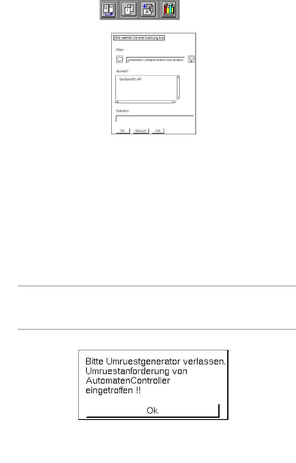 14 Steuerung / Steuerungsmodule Betriebsanleitung Linienrechner UNIX 14.5 Umr ü stgenerator URG Softwareversion 502.xx Ausgabe 10/2000 468 I t I I ● Dialogbo x mit Ok best ä tigen. ● URG ü ber d as Men ü "DA T EI&qu…