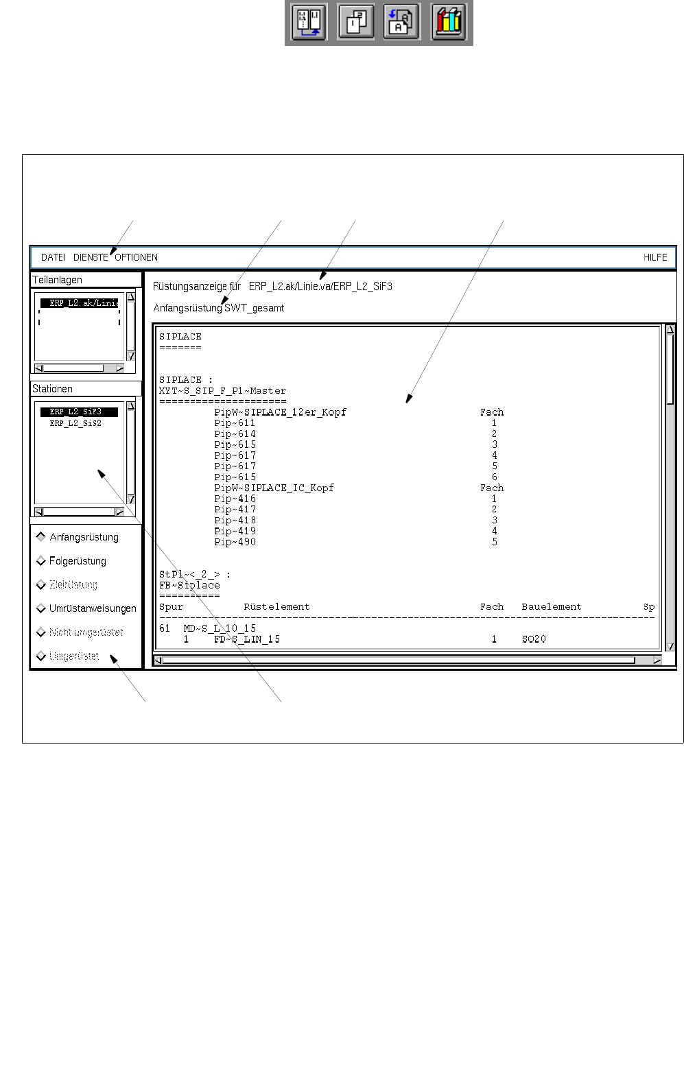 Im Hauptfenster kann sich der Bediener z.B. die Daten der Anfangsrüstung und die Umrüstanweisung auf