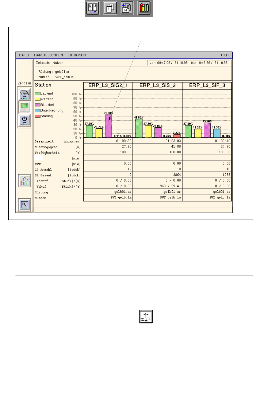 ● In der Auswerteform "Verfügbarkeit" die Ikone im Diagramm der gewünschten Station ank-