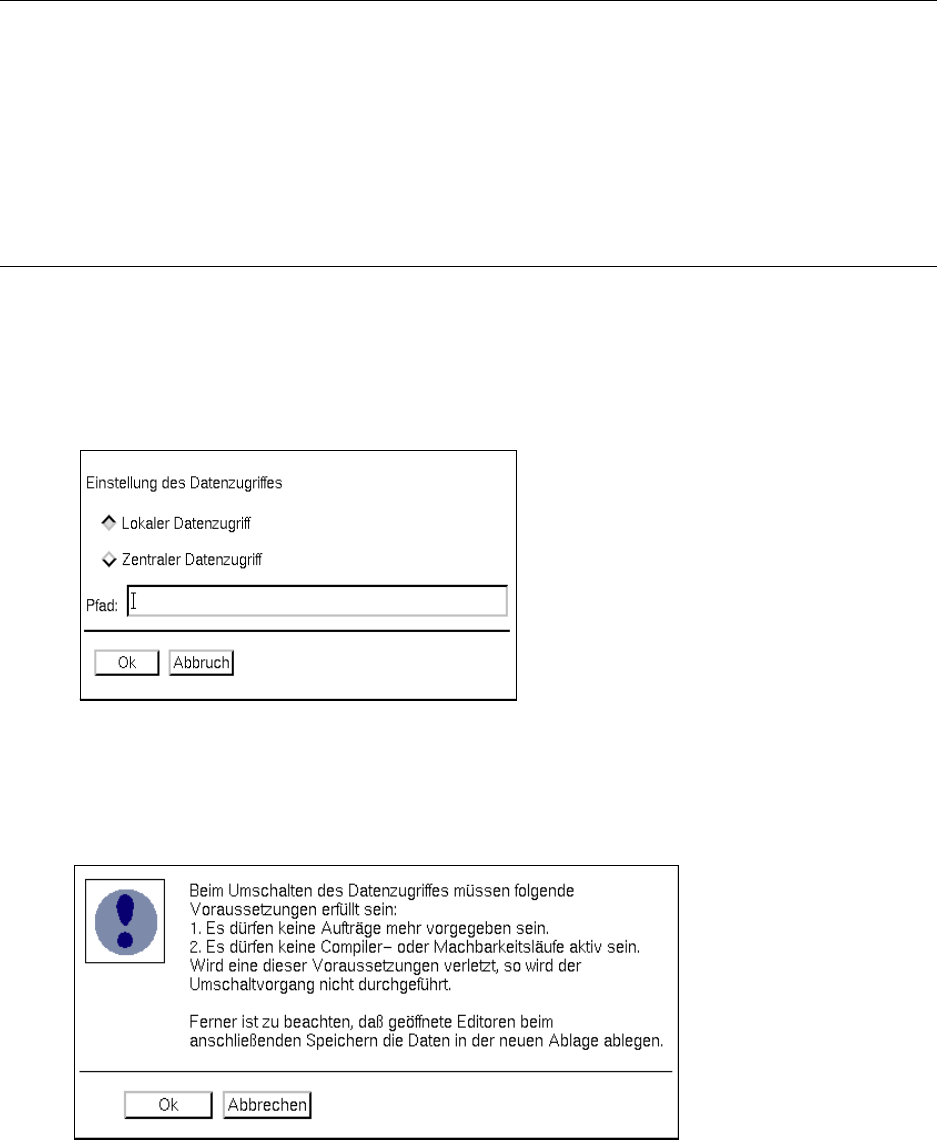 Betriebsanleitung Linienrechner UNIX 4 Datenverwaltung Software-Version 50 1.xx Ausgabe 01/99 4.2 Datenhaltung 4 - 7 ● Wenn a lle in de r Dialog box au fgeführte n Voraus setzung en erfüll t sind, de n Butto n Ok anklic …