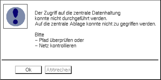 zentrale Datenhaltung nicht möglich ist, wird folgende Fehlermeldung ausgegeben.