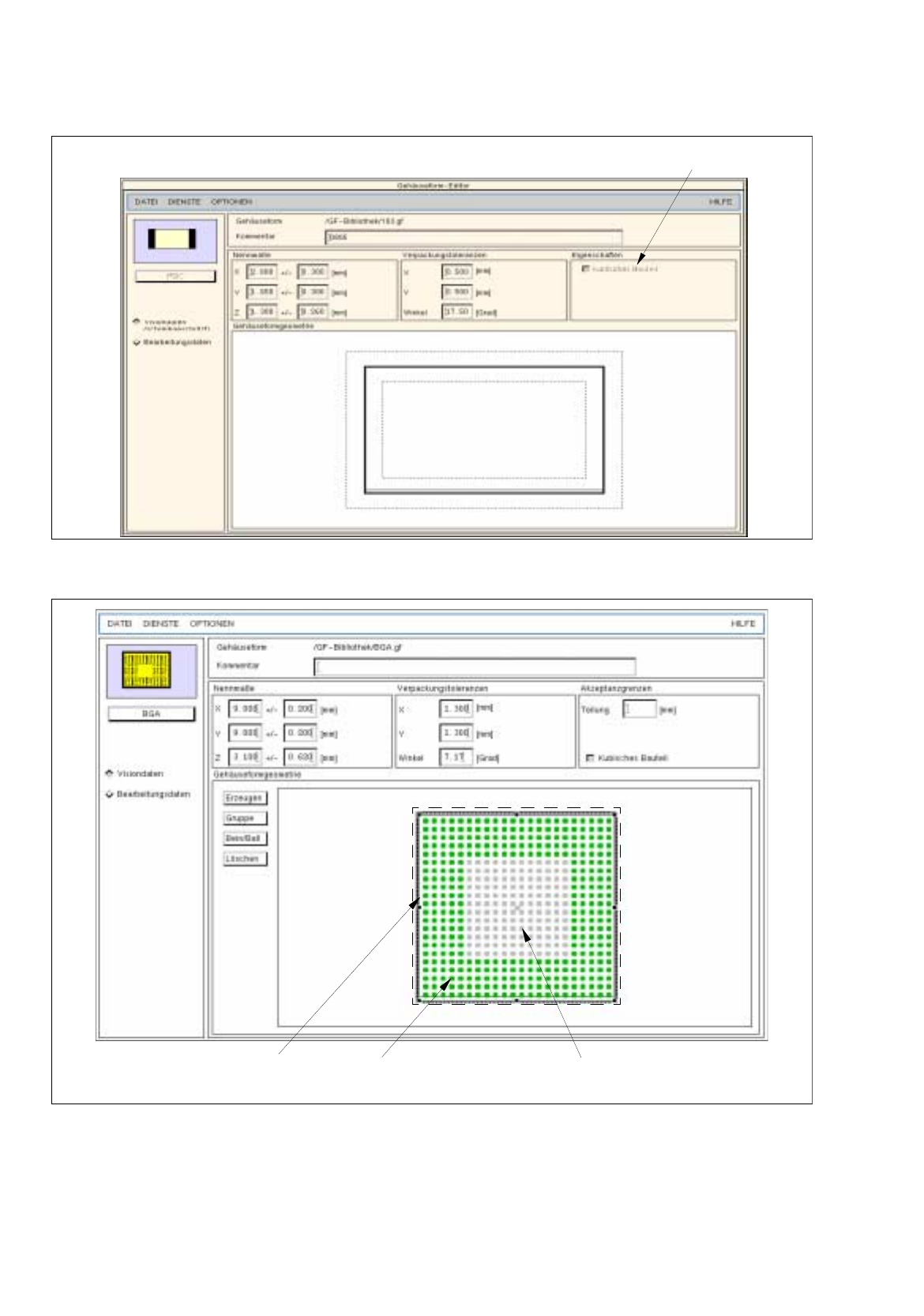 Abb. 6.1.3 Hauptfenster "GF-Editor" (Ansicht Visiondaten - BGA)