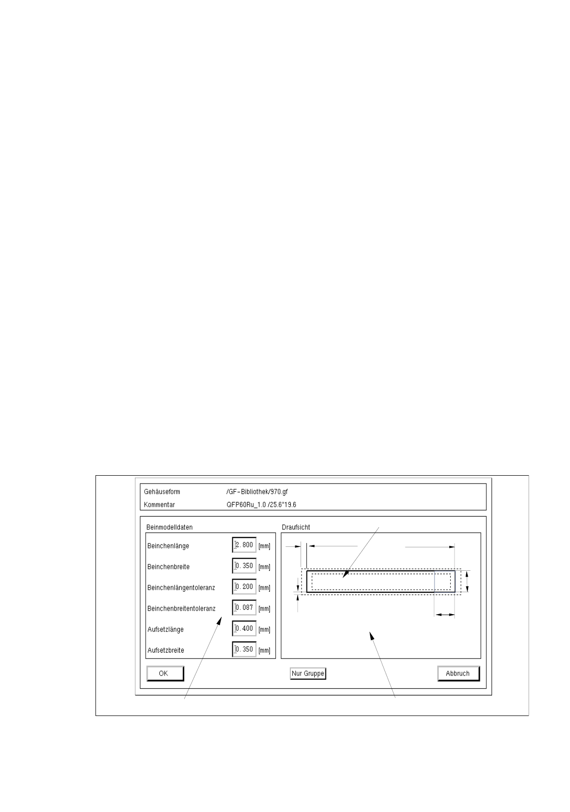 Das Fenster wird geschlossen. Die Beinchengruppe wird mit den Abmaßen des gewählten Bein-
