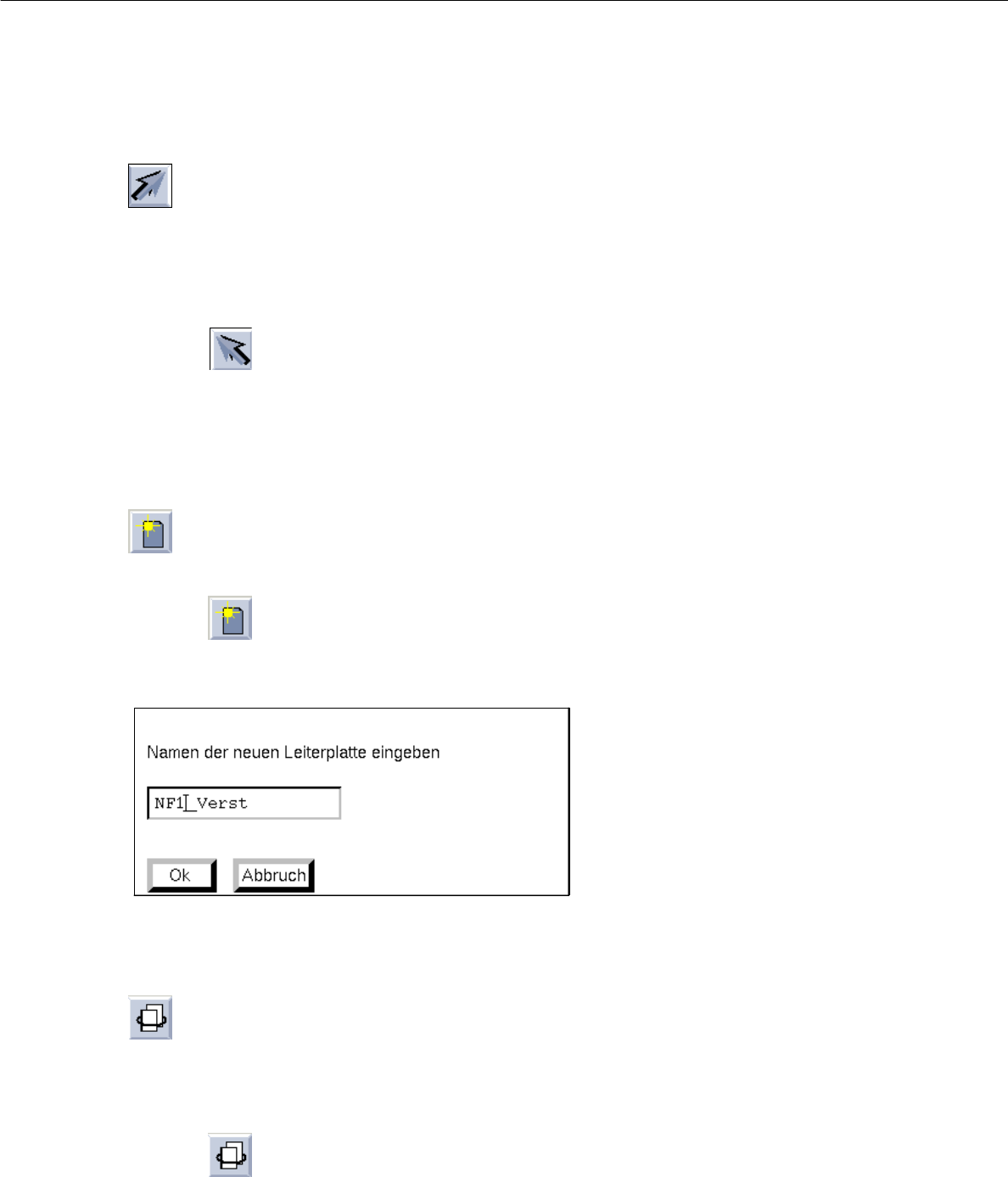 8 Produkt / Leiterplatte Betriebsanleitung Linienrechner UNIX 8.1 Leiterplatten-Editor Software-Version 50 1.xx Ausgabe 01/9 9 8 - 12 - Selektie ren Ist diese Ik one ak tiv (invers dargest ellt, m it Pfeil von l inks unt…