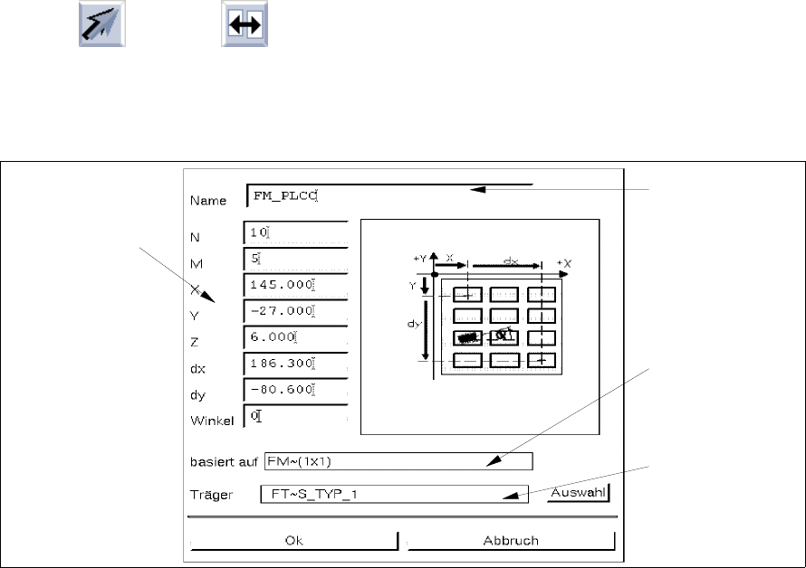 9 Produktionsmittel / Förderer Betriebsanleitung Linienrechner UNIX 9.1 Förderer-Editor Softw are-Version 50 1.xx Ausgabe 01/9 9 9 - 14 2. Firmen-Typ "FM_PLCC" erzeugen und Flächenmagazindaten editieren ● Ikone…