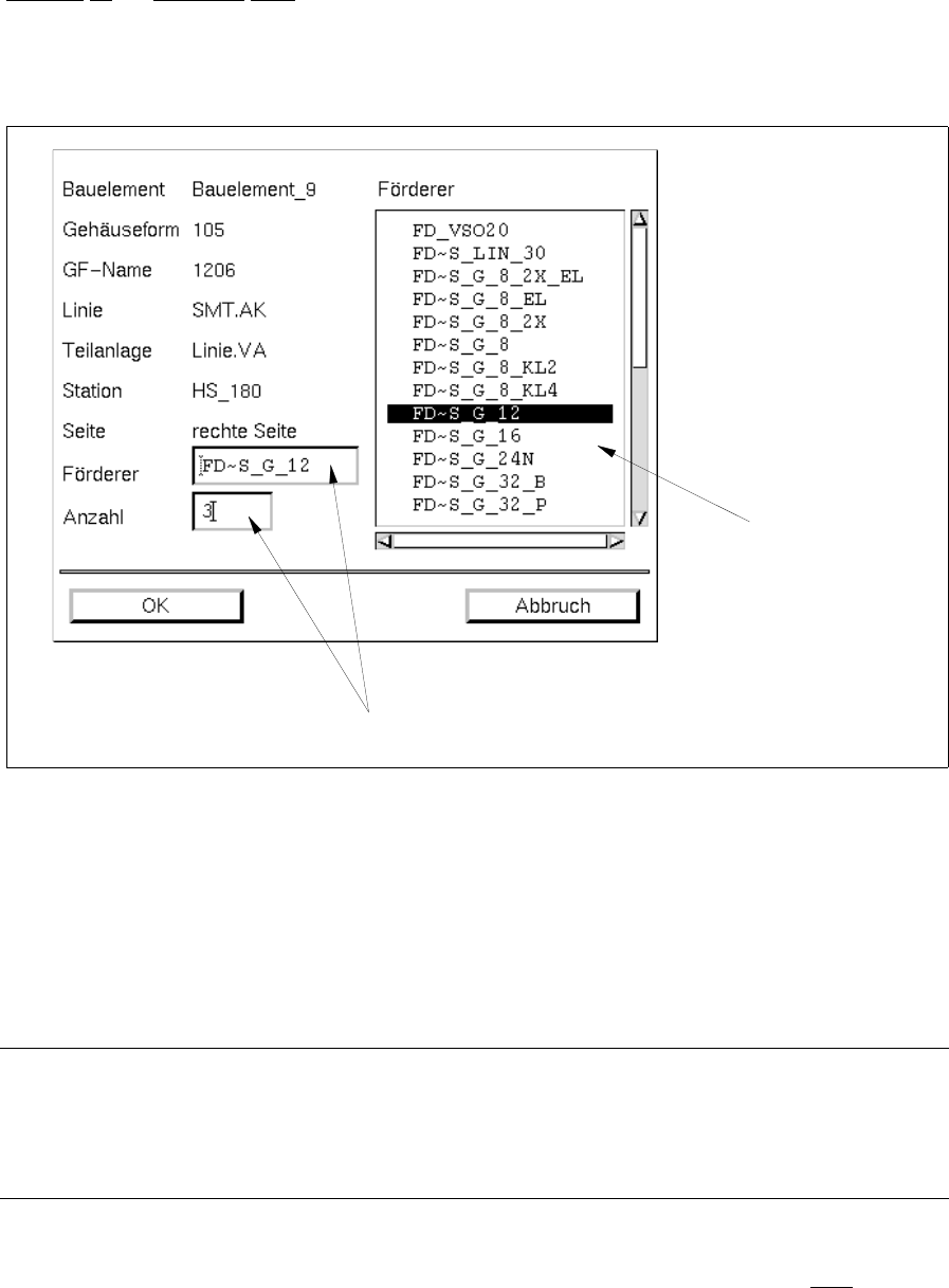 Editieren der Förderer- bzw. Flächenmagazindaten geöffnet (siehe Kap. 9, Abb. 9.1.3 und 9.1.4). Mit