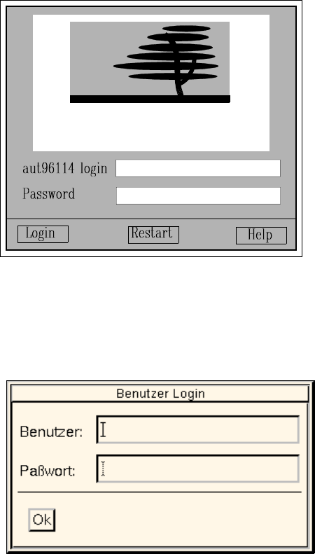 ● Den Benutzernamen und das im Benutzerkonto festgelegte Paßwort (siehe Kap. 3, Abb. 3.2.2) in