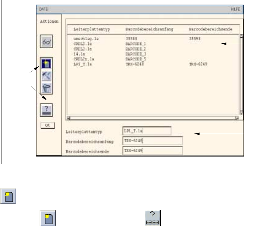 Hier können den Leiterplattentypen bestimmte Barcodebereiche (Anfangsbarcode --> Ende-
