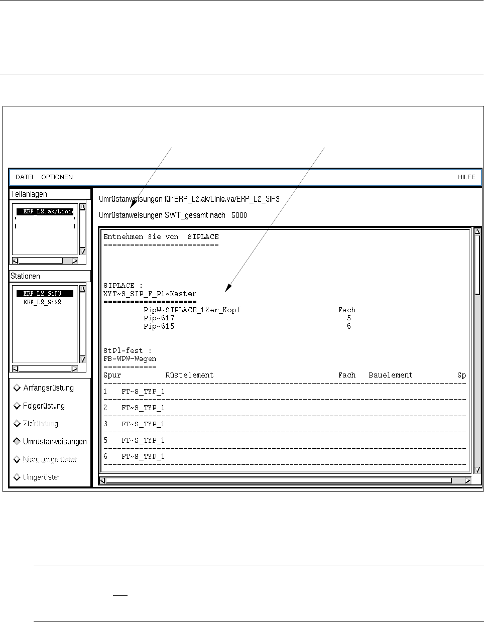 Abb. 14.5.3 Anzeige einer Umrüstanweisung für die Station "ERP_L2_SiF3" (SIPLACE 80F)