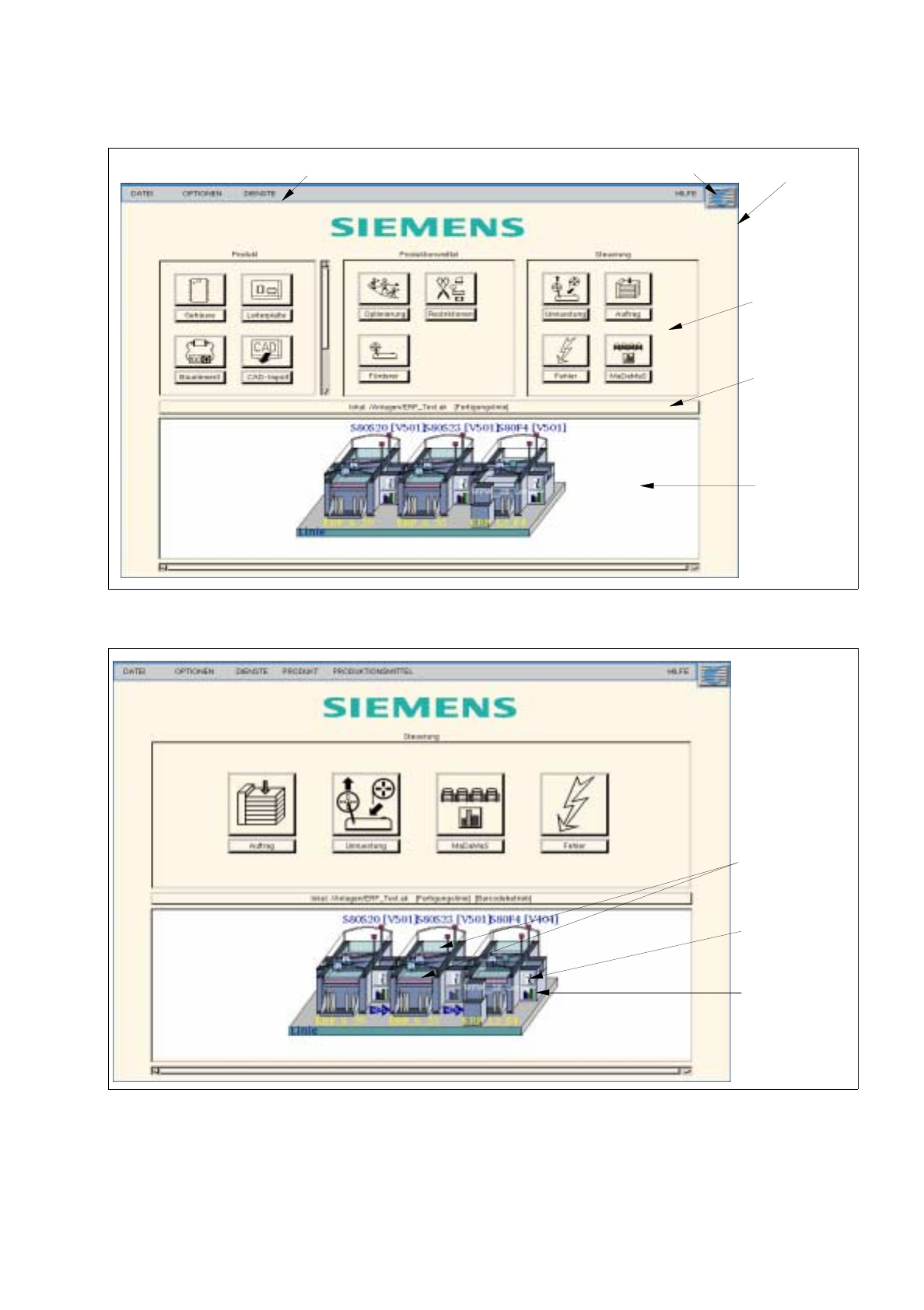 Wurde die Gesamtanlage im Anlagen-Editor als Fertigungslinie definiert, wird der Eintrag