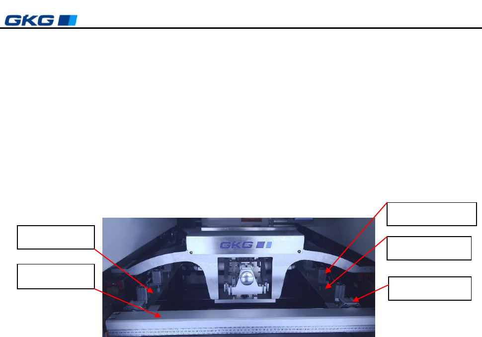 凯格精密机械有限公司 - 14 - 第三章 维护与 保养 3.4.1.2 清洗部分 2 .检查擦拭板是否与钢网完全平行接触,若不是完全平行的则应该调整。应该检查两气 缸运动是否正常,平衡,有无发卡现象;并做出相应调整。 建议 : 为了更好结合经济效益和清洗, 印刷品质, 现有许多客户会正反面使用清洗纸, GKG 公司建议清洗纸 最多只能正反 面各用一次 , 即要更换。 否则, 会由于清洗不干净而严 重影响印刷品质。 图 3 -2 清洗纸…