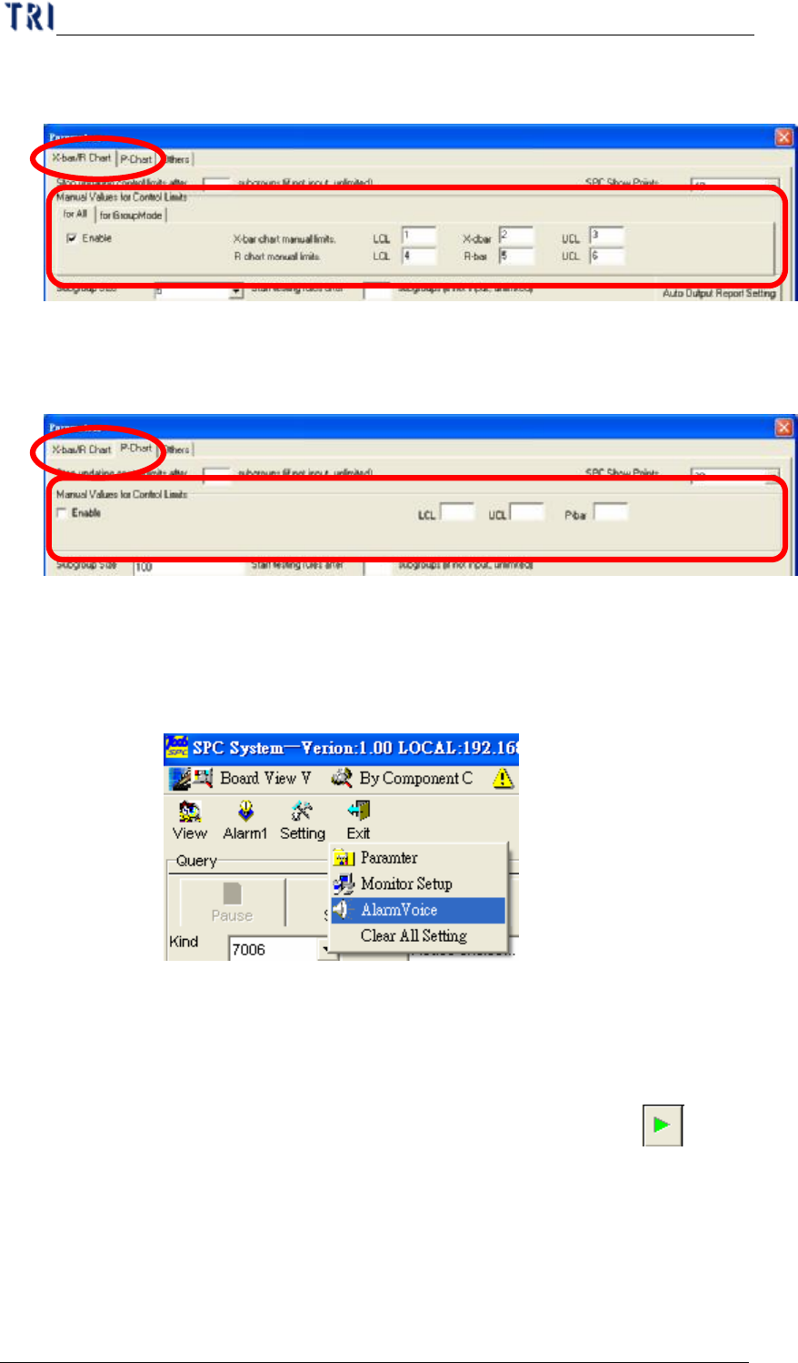 單元 三 、 S PC 使 用手冊 AO I R e p a i r S t a t i on 使 用 手冊 129 u f o r G r o up M o de :在 此 處 所輸 入的 管 制 界 限 值 適 用 於 群組 模 式下 , 進 行 監 控 的項目。 n P 管制圖 : 若 您 要 進 行 P 管 制圖 的 自訂管 制 界 限 設定 ,請 切換 到 「 P C h a rt 」 這 頁 來 進 行 設定 , 如 下 圖…
