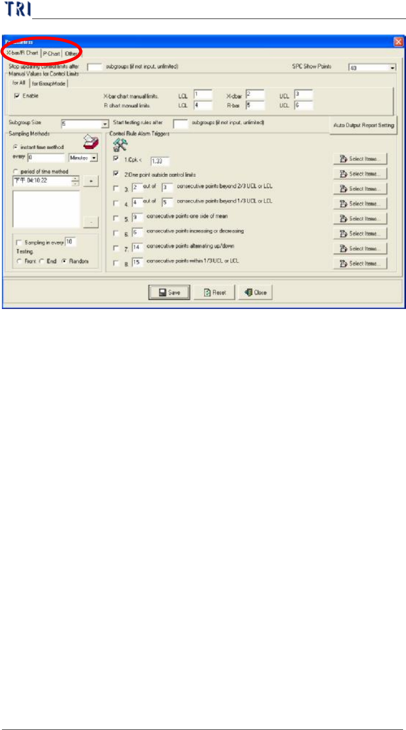 所選擇的使用「X-bar/R Chart」的監控項目,您可以