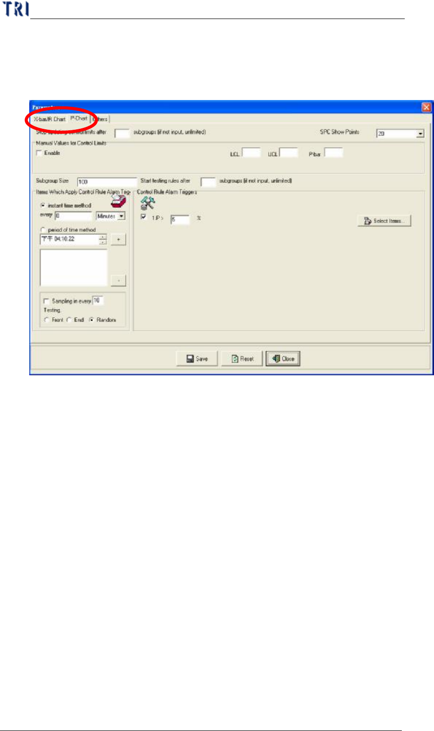 n P 管制圖:若您要進行 P 管制圖的抽樣設定,請切換到「P
