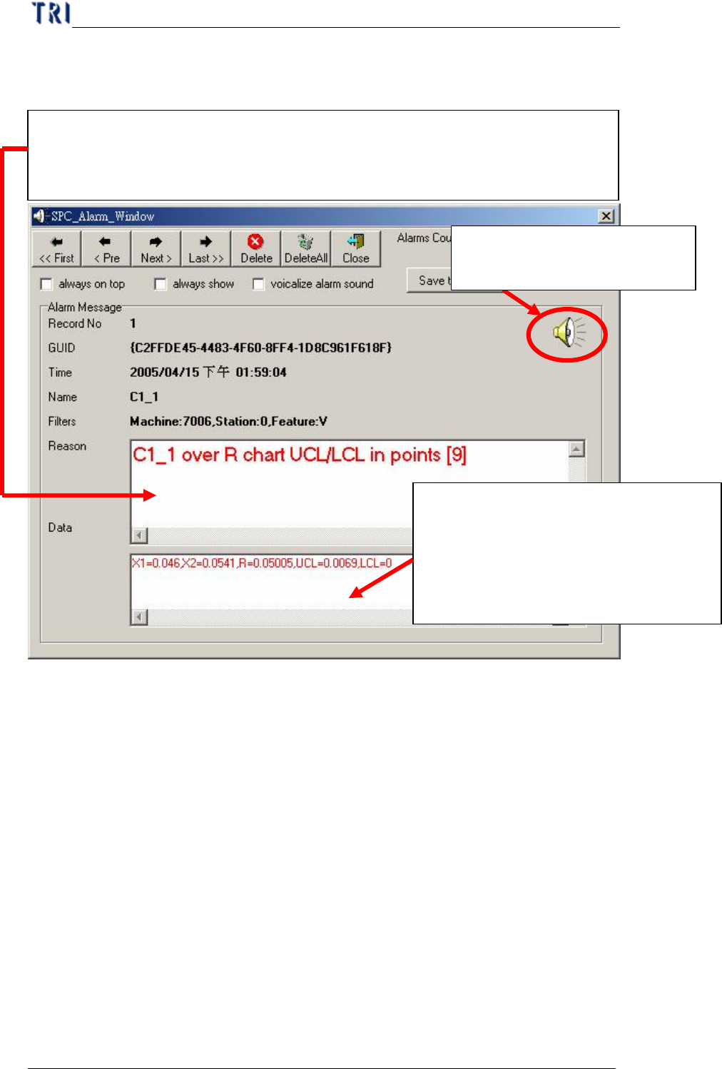 該 Alarm 的,若是的話,就會將當時計算出的管制上限值、管制下