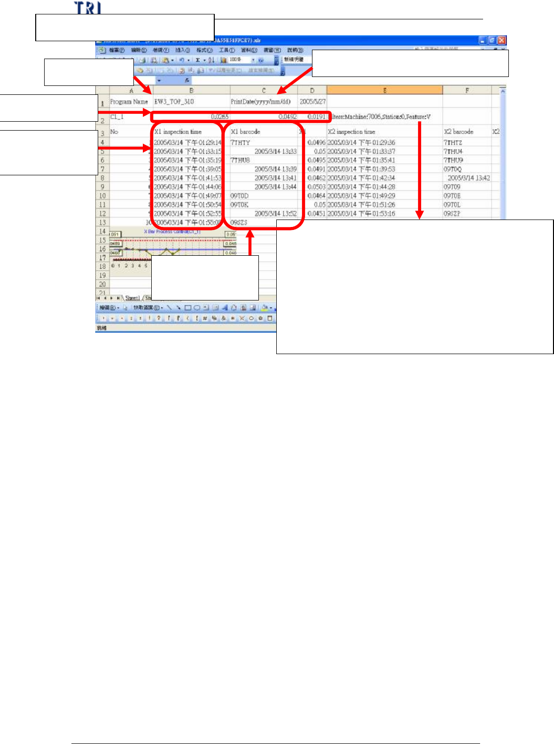 單元 三 、 S PC 使 用手冊 AO I R e p a i r S t a t i on 使 用 手冊 155 4. 查 看 E x c e l 顯 示 當 時 監 控 該 元 件 所 使用的 條 件 , 內容 說明 如 下: l M a c h i ne 代 表 是 機 台 類 型 , 有 700 6 / 710 0 / ICT 三 種 l S tati on 代 表 是 機 台 I D l F e at u re 代 表 所選…