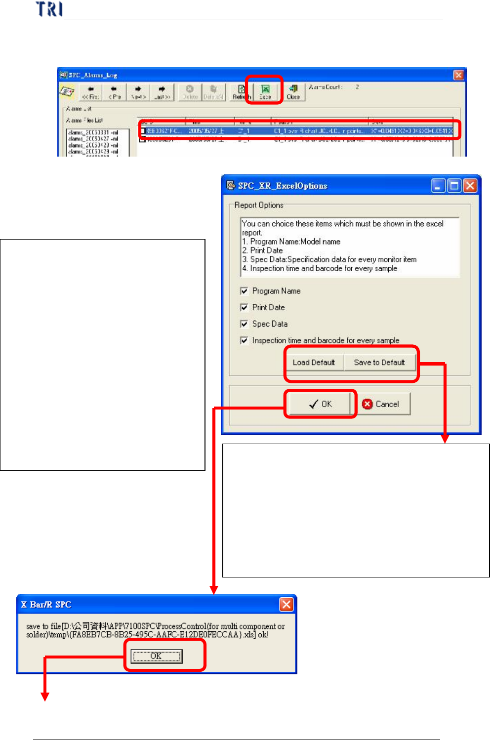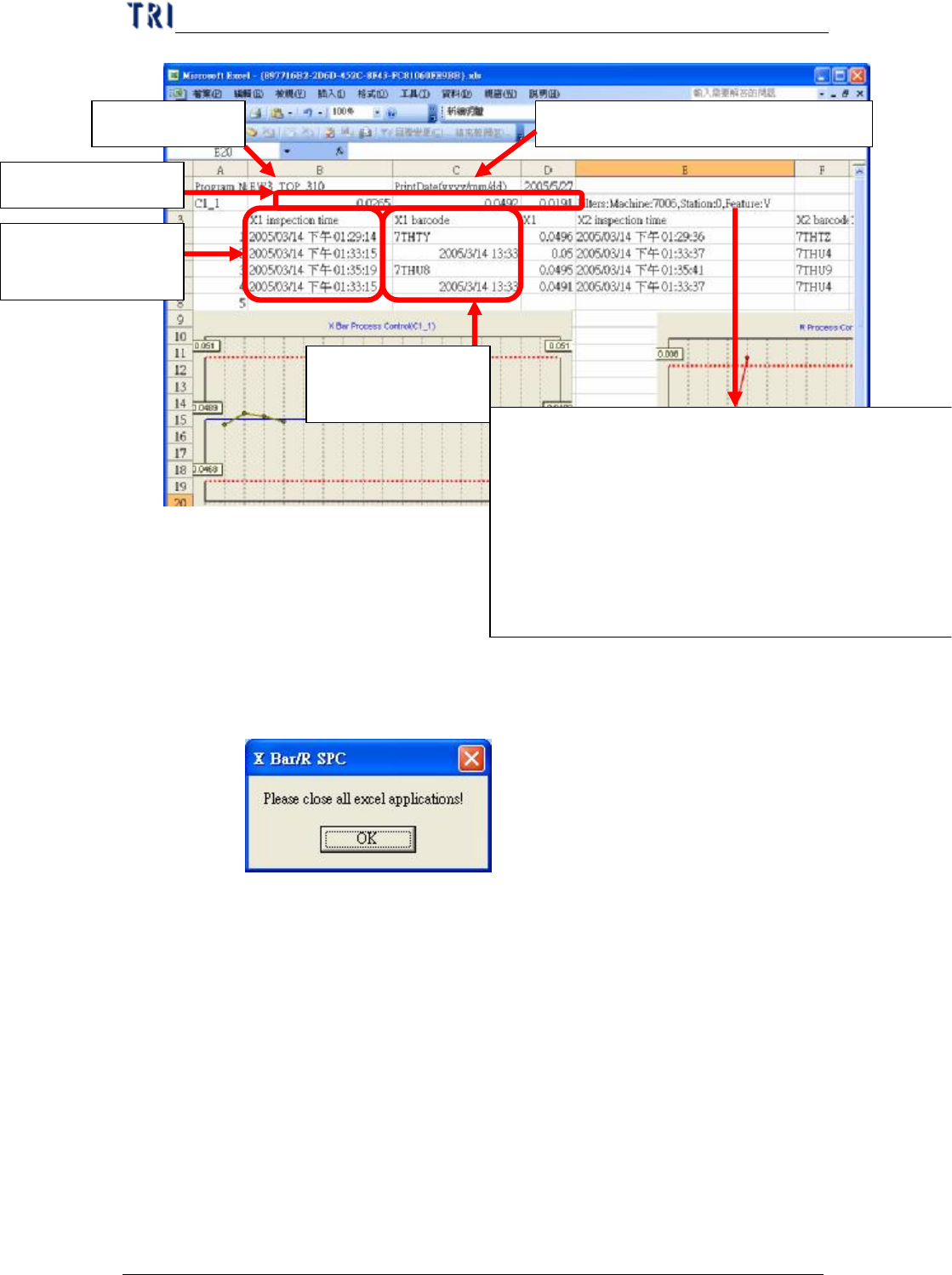 單元 三 、 S PC 使 用手冊 AO I R e p a i r S t a t i on 使 用 手冊 161 u 「 E x c el 」 可 以 讓您 針 對 某 一個 訊息 輸 出 E x c el 的 報 表 結 果 , 如 下 圖 。 2. 報 表 選 項設定 可 以 提 供 你 設定在 E x c el 報 表中 , 除 了 輸 出 在 監 控 畫 面 中的 統 計 資料 與 管 制圖 外 , 還 要 顯 示在 此選 …