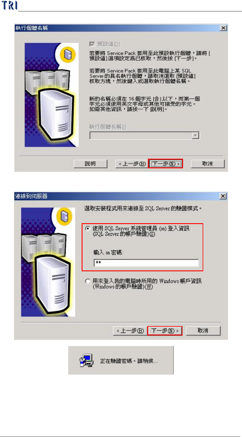 n 輸入 Sa 的密碼為 Sa