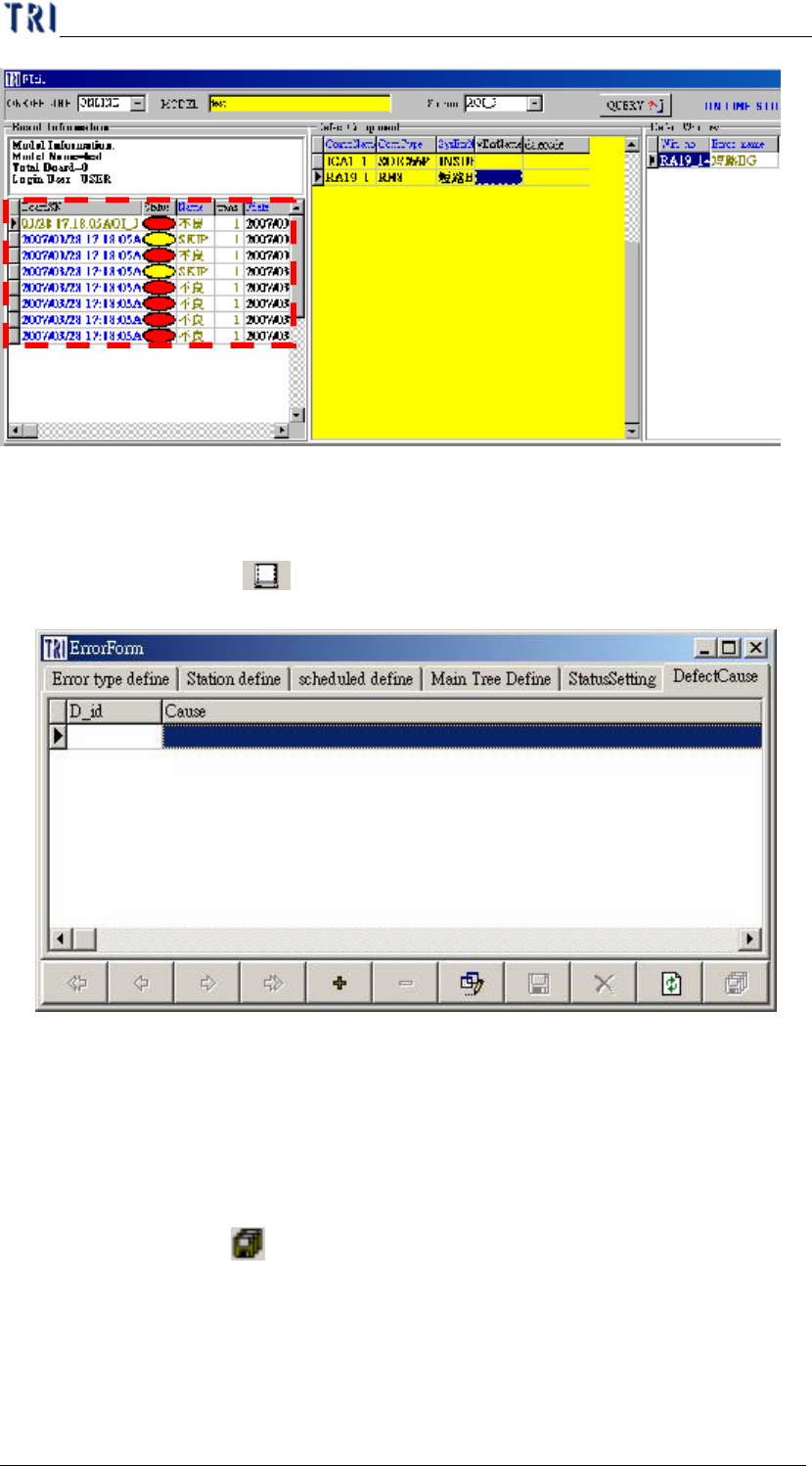 業時點選[ Key in Defect Cause],就會跳出視窗供使用者點選不