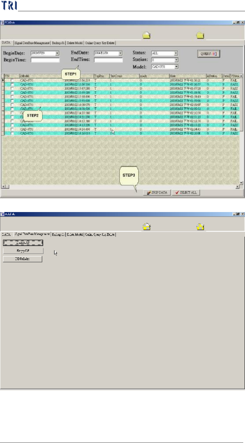 Step1. 選擇日期、Status、Station、Model Name 後按下[QUERY],系