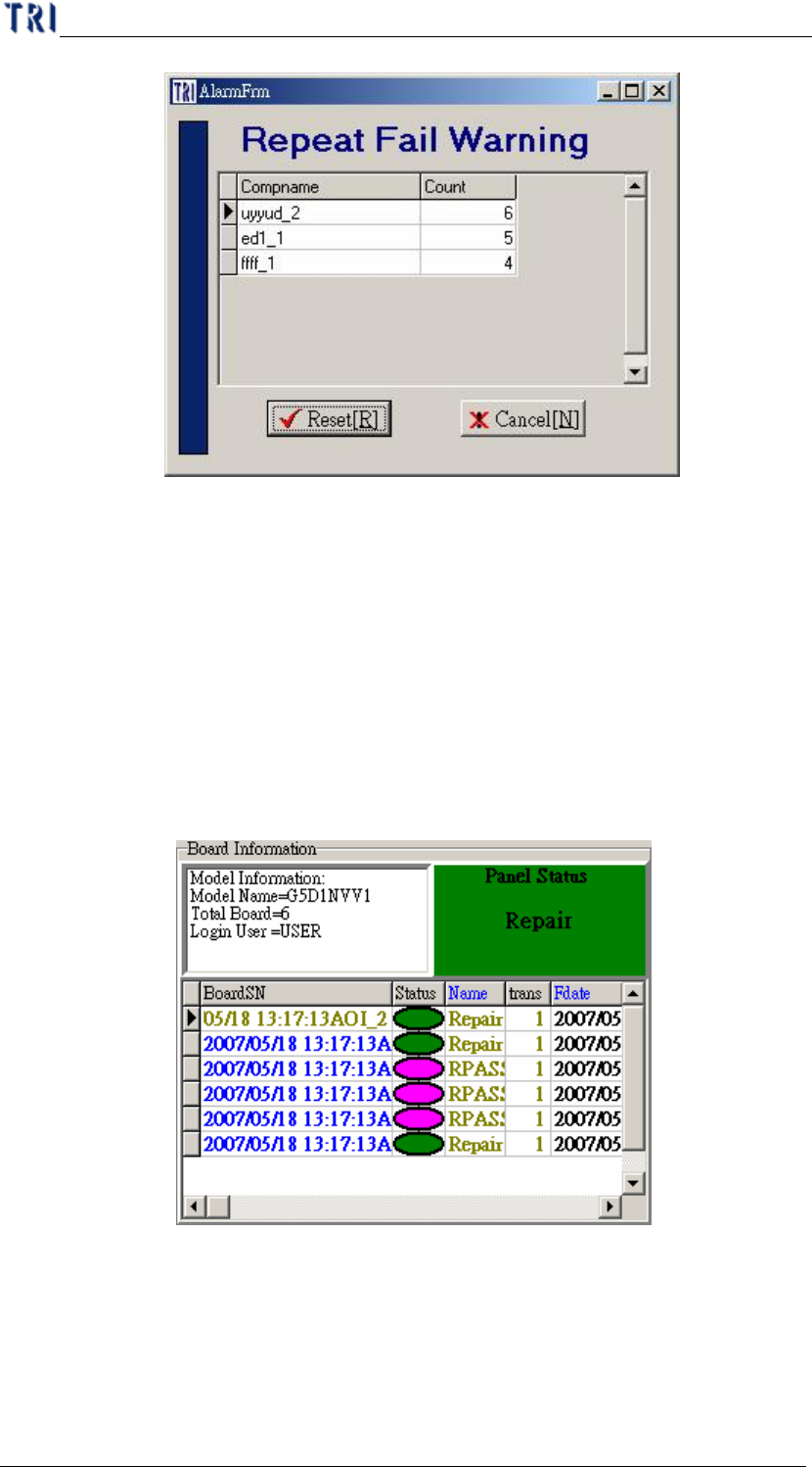Ø 當元件重複不良次數達指定次數時,會自動出現對話框警告。