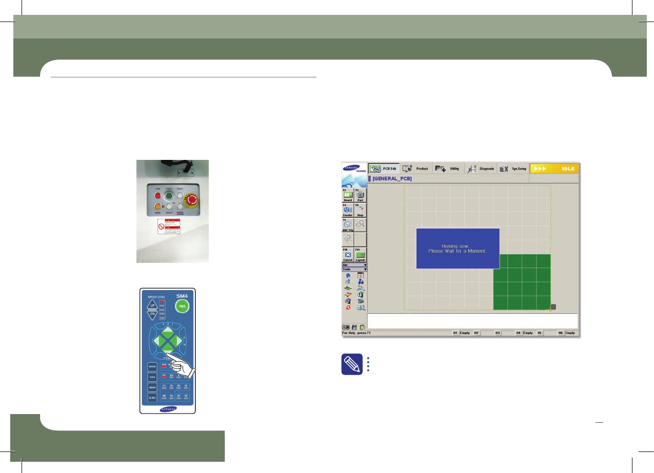 Operation Handbook 22 Chap ter 2 Adva nced Fl exible Compone nt P lacer 전 원 공 급 및 생 산 전 준 비 절 차 본 Pa rt 에서는 전 원을 공 급하 는 방 법과 생 산을 시 작하기 전 점검 사 항에 대하 여 알아 봅니다 . 4 . Wa rm in g-Up 1. 'Uti l ity' 메 뉴 선 택 : 'U…