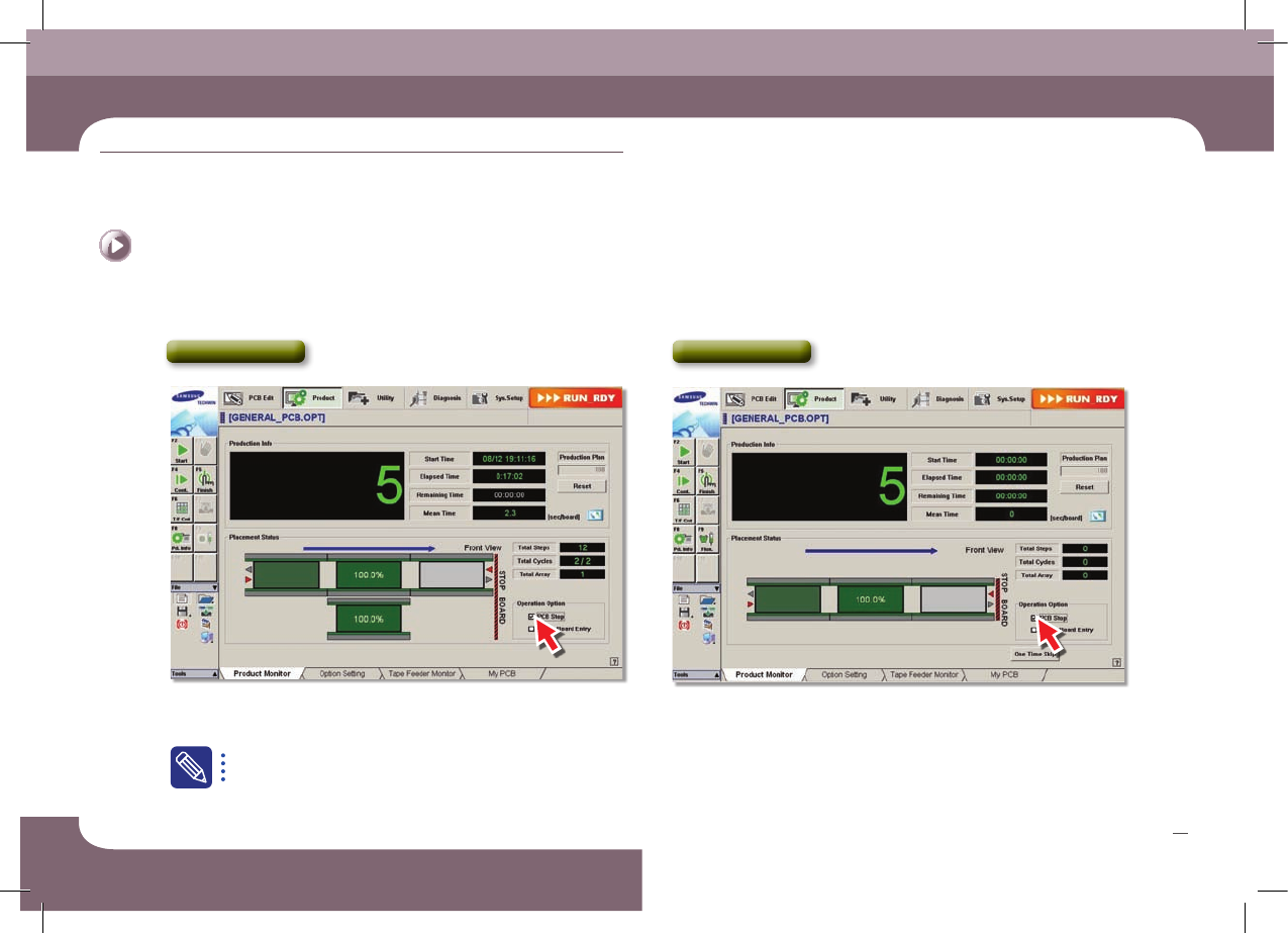 'PCB STOP' 기능을 이용한 생산 완료는 생산 수량을 설정하지 않았거나,
