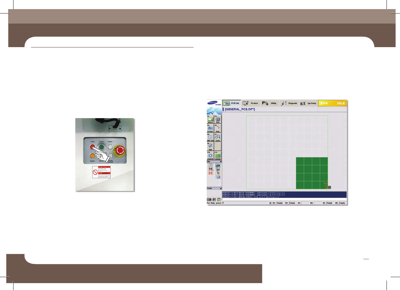 비상 정지 후 생산을 다시 시작할 경우, 반드시 작업자는 PCB상에 비상정지로 인해 떨어진 부품이 없는지 확인하고 있다면 제거하십시오.