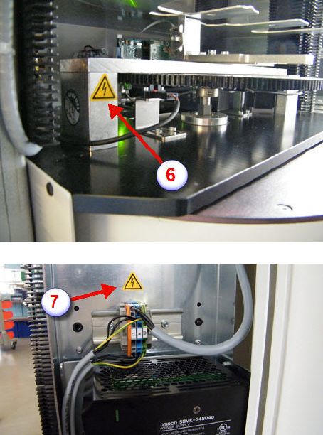0019797 3 - 10 / 02 , 2016 Safety SIPLACE Mat. Towe r St ora ge Serv ice Manual © ASM 1-7 • (6) Portal seen fro m rear on left (if shelves above the portal are mount ed, the main switc h is not vis ible) • (7) Pow er dis…