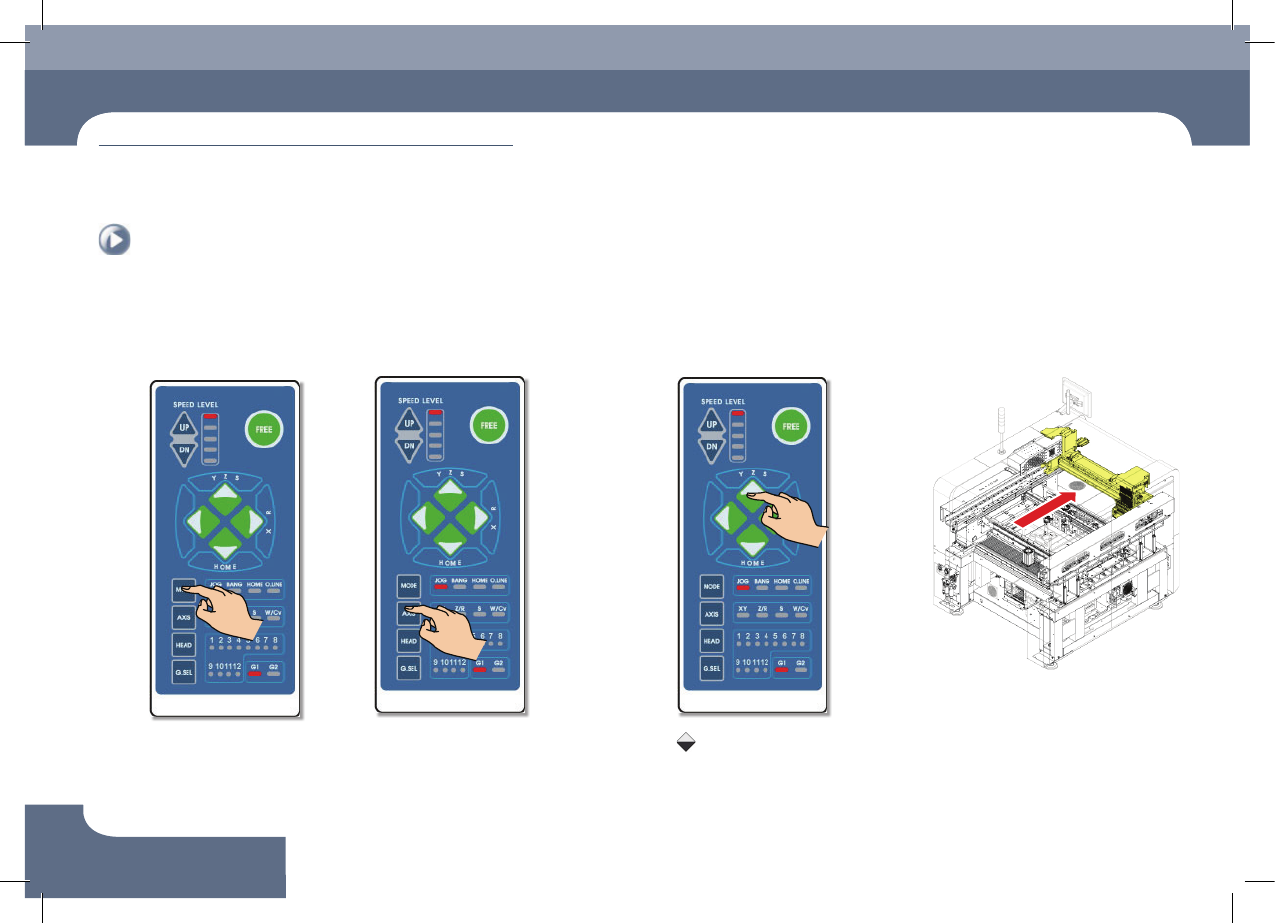 제 1 장 본 Chapter에서는 장비를 유지보수하기 위한 작업환경, 작업도구 등에 대하여 알아봅니다. 유지보수 조건 Nex t Generation, Multi- Functi onal Placer DE CAN S1 Ma inte nan ce Ha nd boo k 1-4 유지보수 전 공통 수행 절차 유지보수 조건 4. X Frame 후 면 이동 1. M OD E 선 택하 기 JOG 선택 2. …