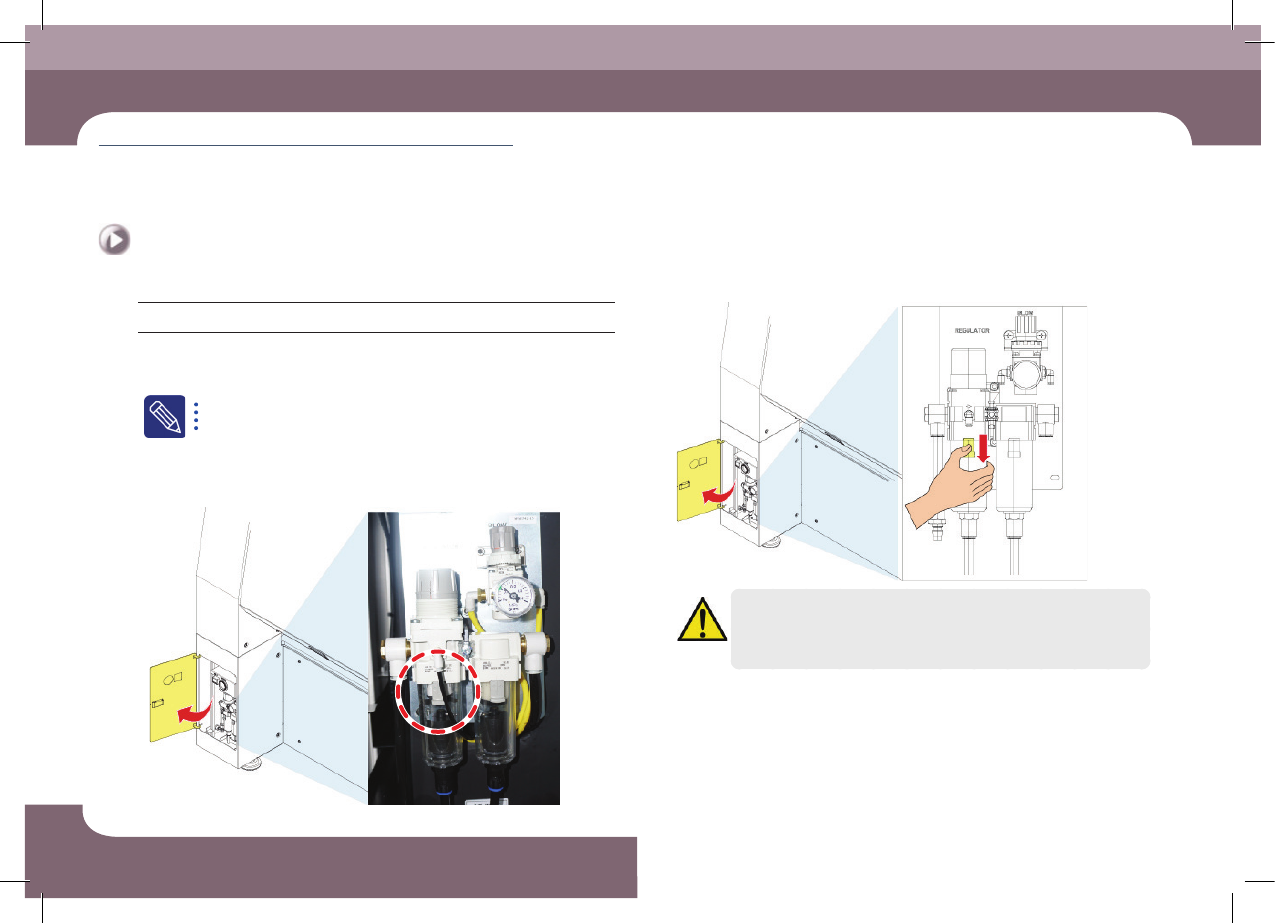 DE CAN S1 Ma inte nan ce Ha nd boo k 3-1 1 제 3 장 일일 점검 Nex t Generation, Multi- Functi onal Placer Air Filter 점검 및 교환 Step 5. 시계 반 대 방향으로 돌 려 용 기를 분 리 Step 6. Air Filte r 용 기에서 Filte r를 분리 하여 교체 장비에서 분리한 오염된 필터는 재 사용이 불가…