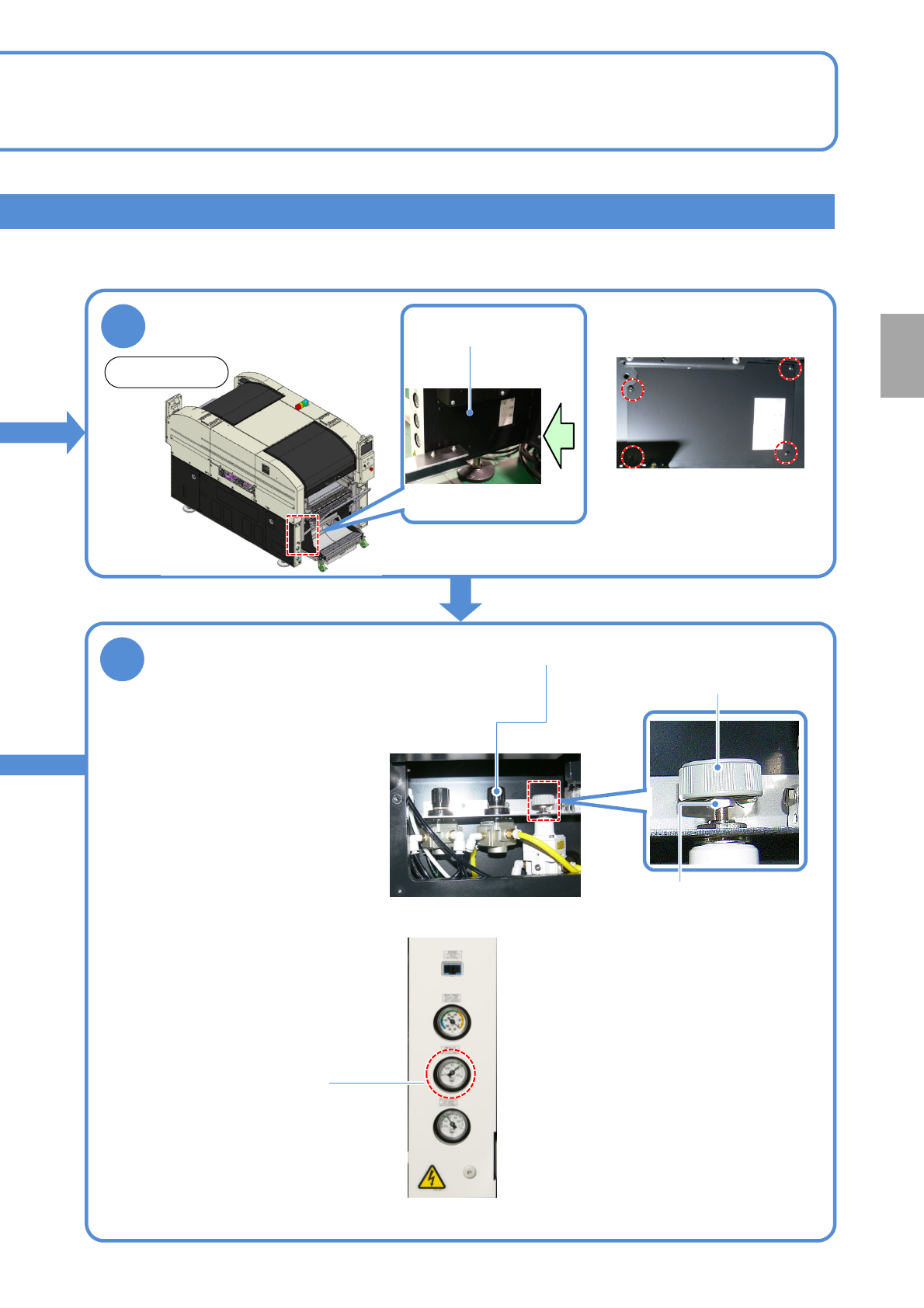 ●清扫吹气压、选购件用气压、真空破坏压在规定值以外时,请调整。