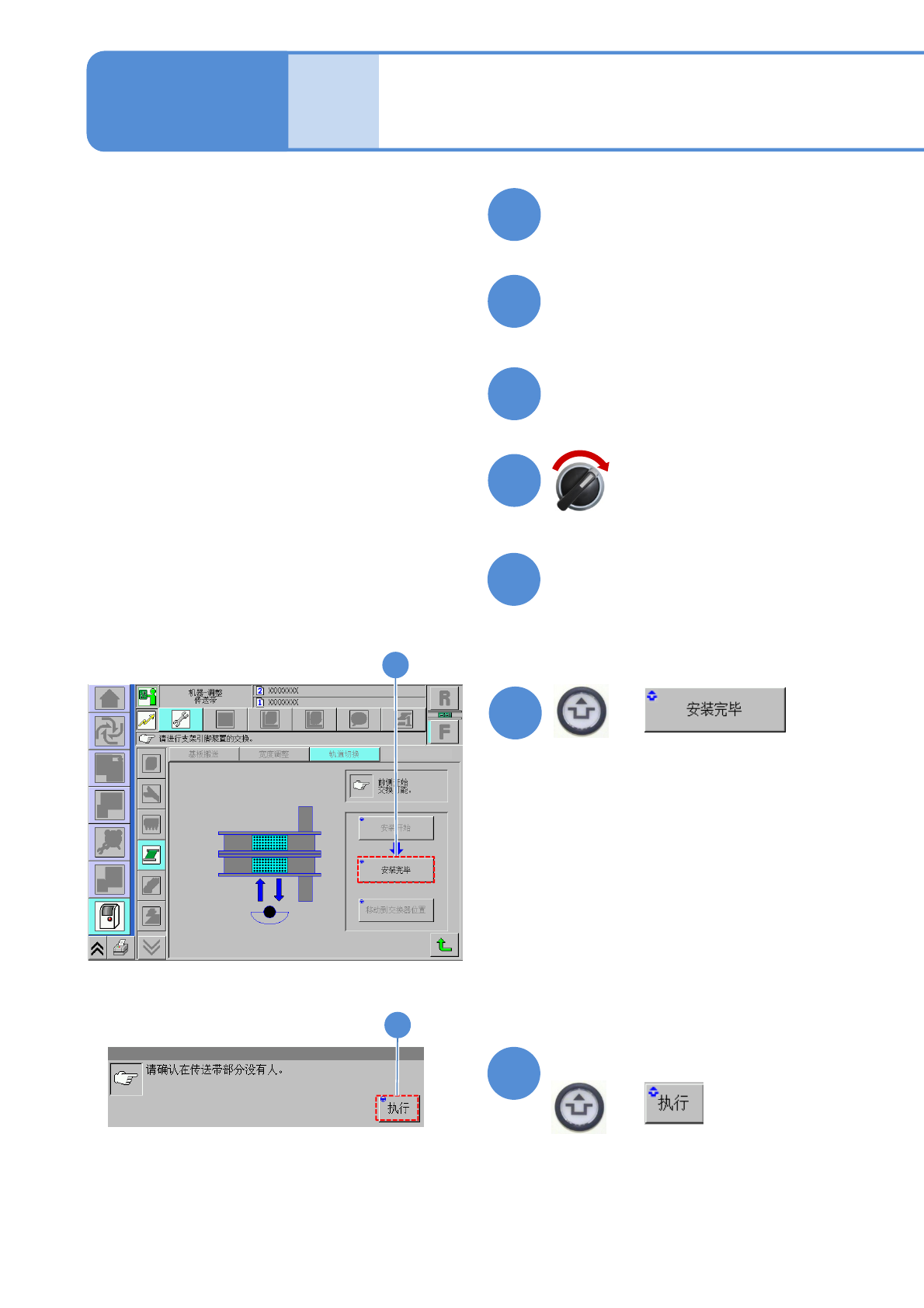 NPM-W 2 EJM7DC-MB-11M-05 模式的 切换 1 1-3-1 -3 切换到单轨模式 2 维修保养篇 1 1-3-1 17 18 16 14 15 13 12 + ( 基板支撑块转为下降状态 ) 确认提示 + 安装交换台车 ( → P.3-2) 伺服开关 ON 关闭安全盖 取下盖在多功能识别照相机上的 棉纱布 把供料器工作台盖返回原位 18 17