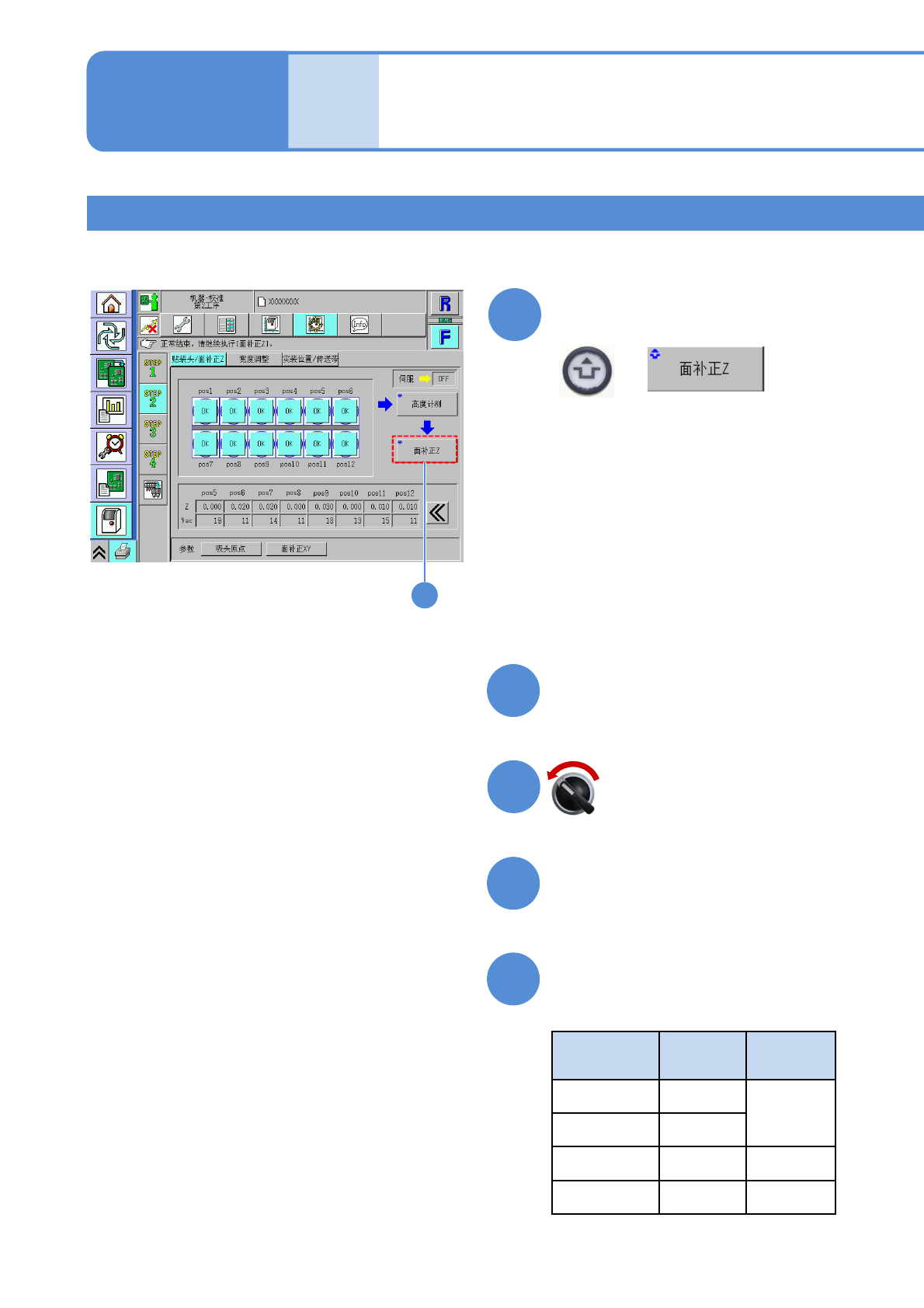 (开始面补正Z的校准)
