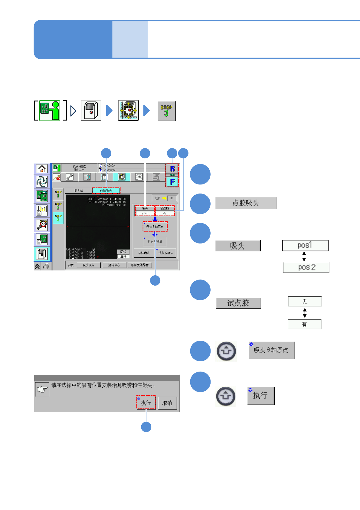●请事先把点胶头安装到装有校准用点胶嘴(7202号点胶嘴)的螺旋单元上,在排出确认之后,充入粘着剂。
