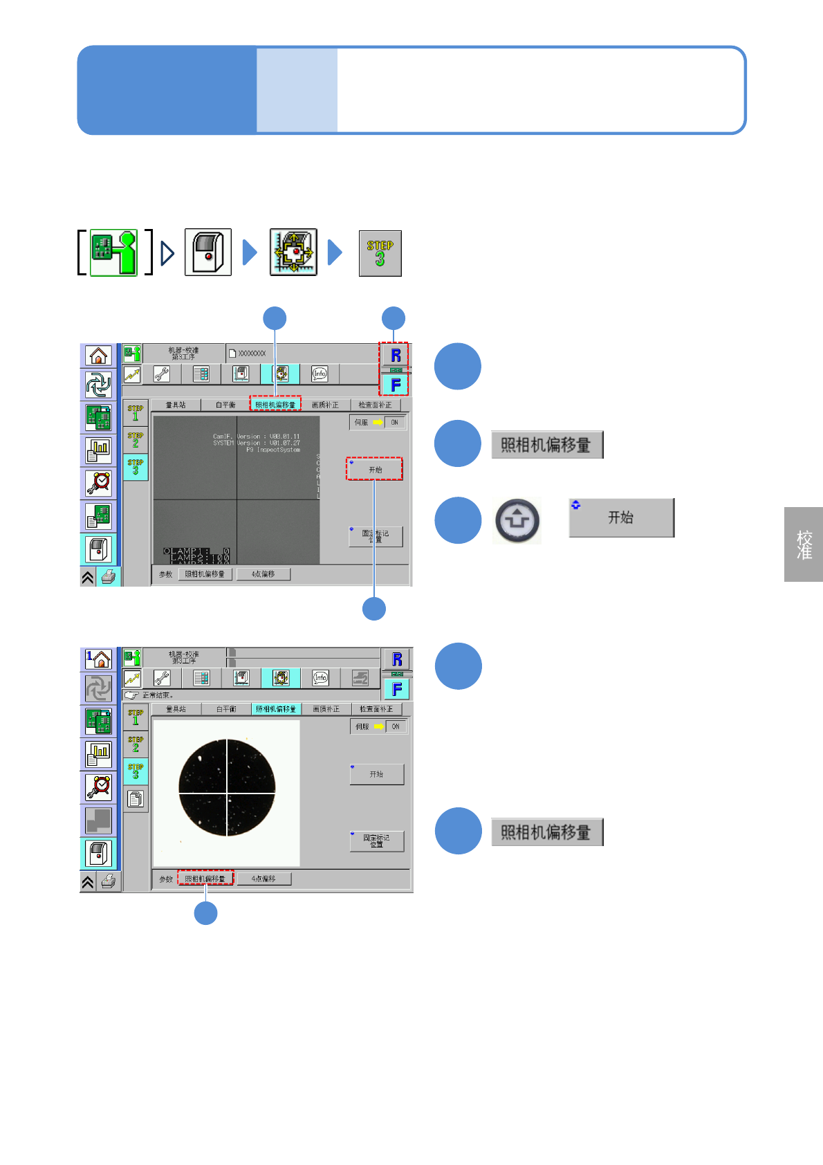 (检查头开始动作,计测照相机的偏移量)