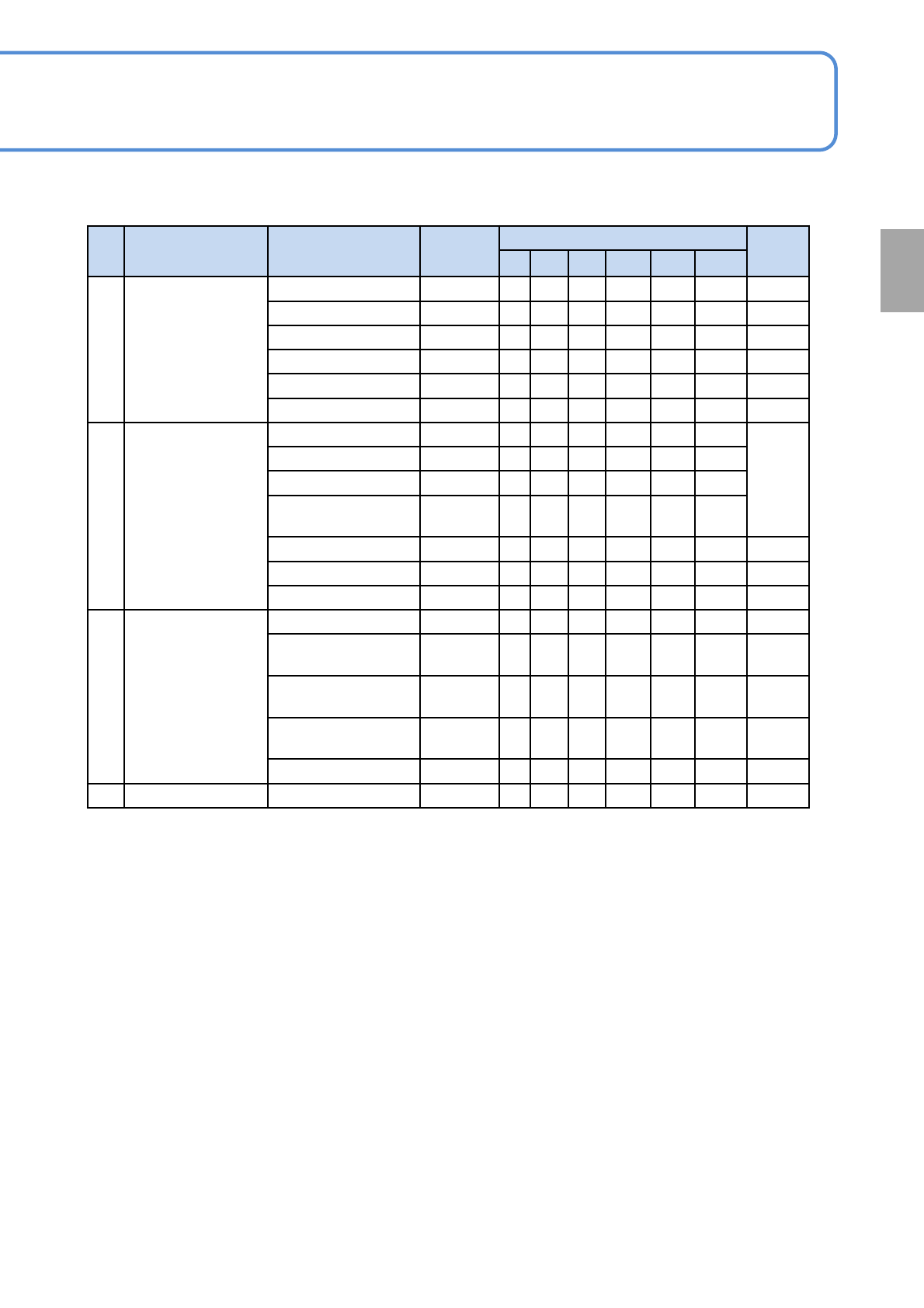 NPM-W 2 EJM7DC-MB-02M-03 概要 2-1-3 -3 ■ 3 吸嘴贴装头 ( 选购件 ) No. 单元名称 检查、添加润滑脂部 位 检查、添 加润滑脂 内容 周期 [h] 参阅 24 140 560 3000 6000 18000 1 贴装头 过滤器 清扫 ○ 5-2 吸嘴座锥形面 ○ 夹具夹扣 添加 润滑脂 ○ 大型反射板 清扫 ○ 6-7 2 吸嘴座 夹具夹扣 检查 ○ 10-1 夹具夹扣 压紧用弹簧 ○ 3 吸…